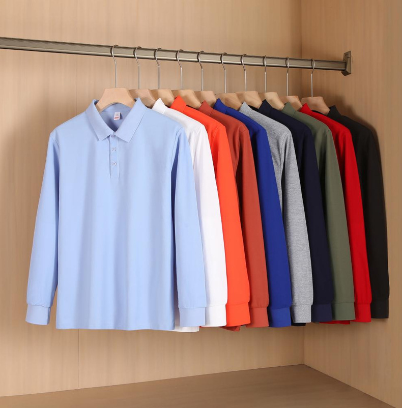 Рубашка Поло из чесаного хлопка с длинным рукавом Индивидуальный логотип Лацканная рабочая одежда Униформа для группы Печать Культурная рекламная рубашка Вышивка