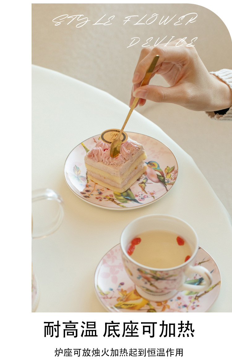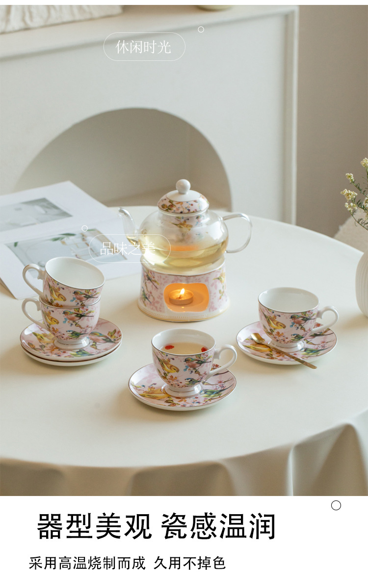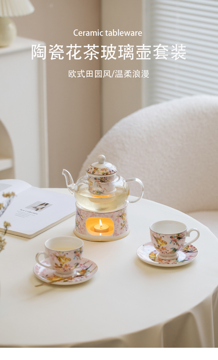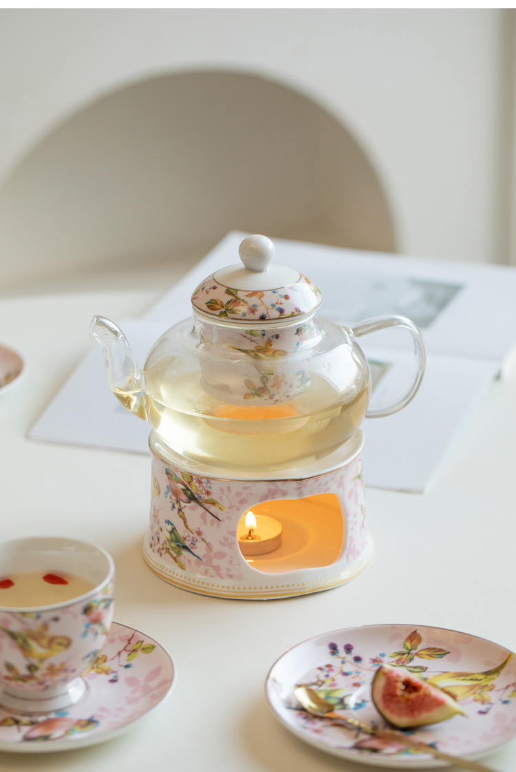 Чайный набор британского послеобеденного чая с розовой птицей, цветочный чайник, подогреватель для свечи, французский чайный набор, фруктовый чайник
