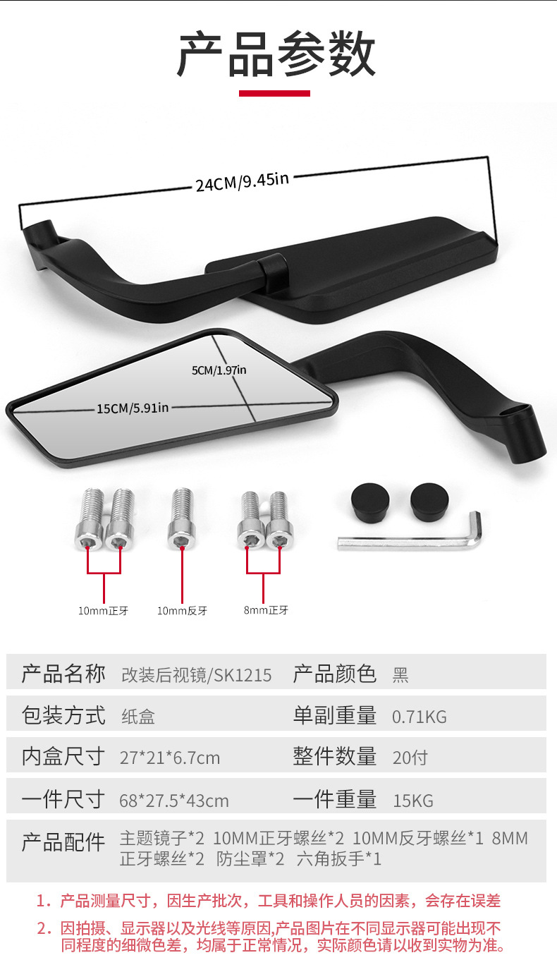 Аксессуары для модификации мотоцикла Зеркало заднего вида Невидимое крыло Регулируемое зеркало ножа Универсальное мотоциклетное зеркало для уличного байка