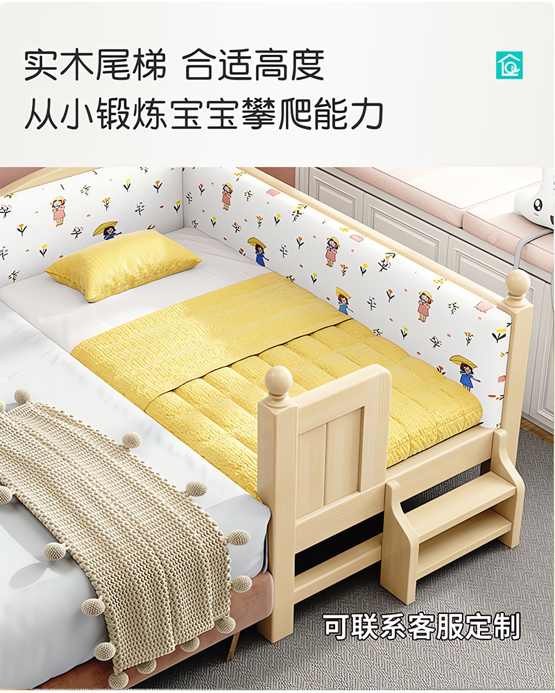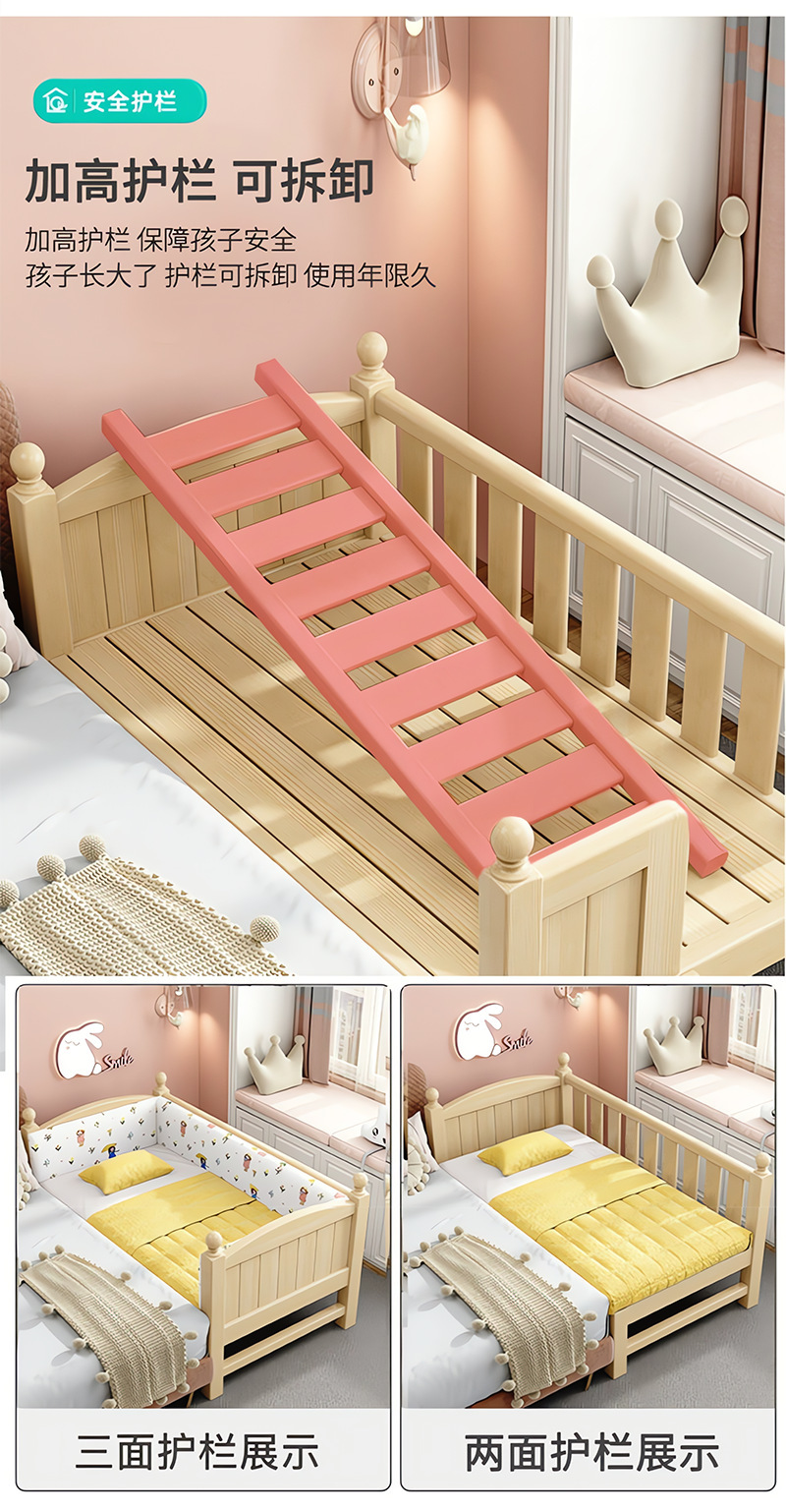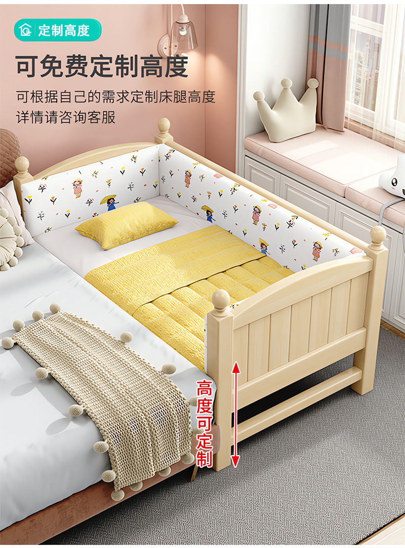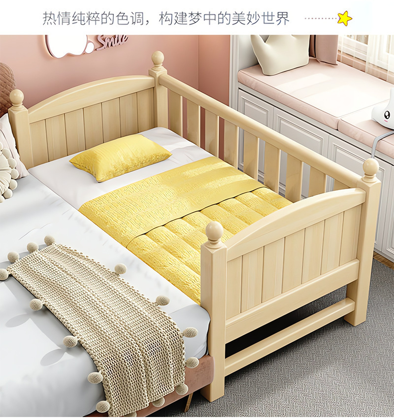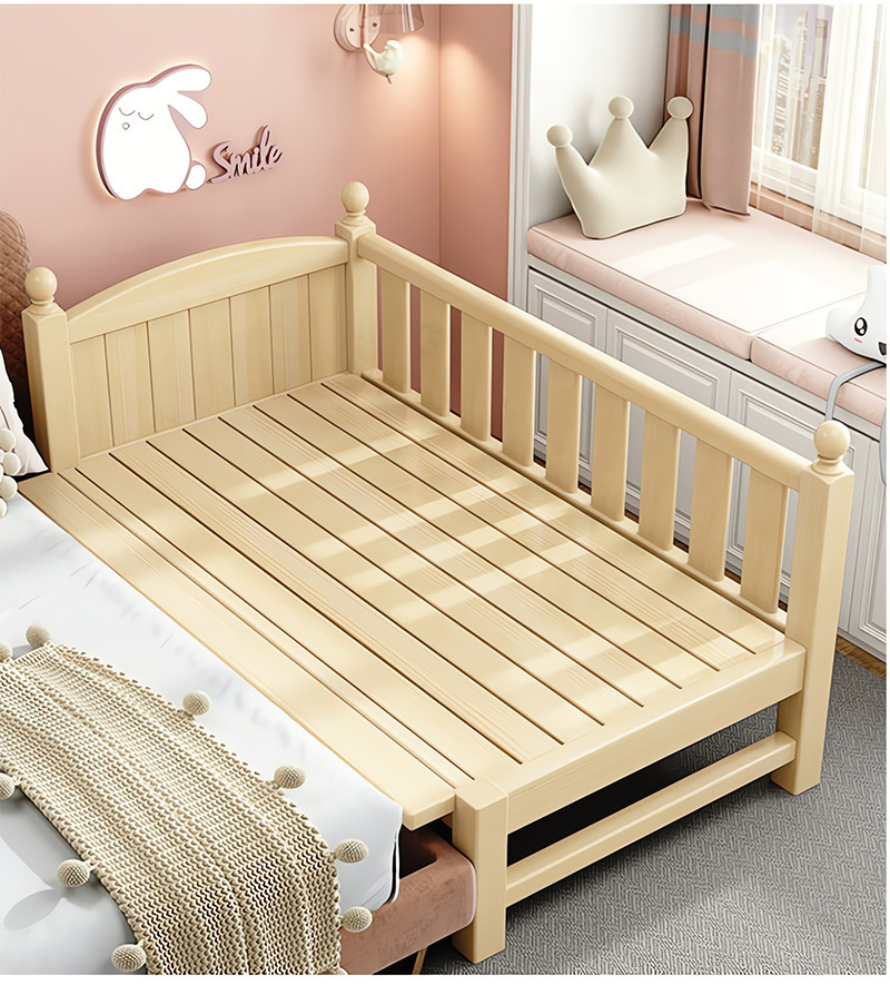 Детская кровать из массива дерева, детская кроватка, плоская кровать для мальчиков и девочек, расширенная боковая кровать для детской комнаты