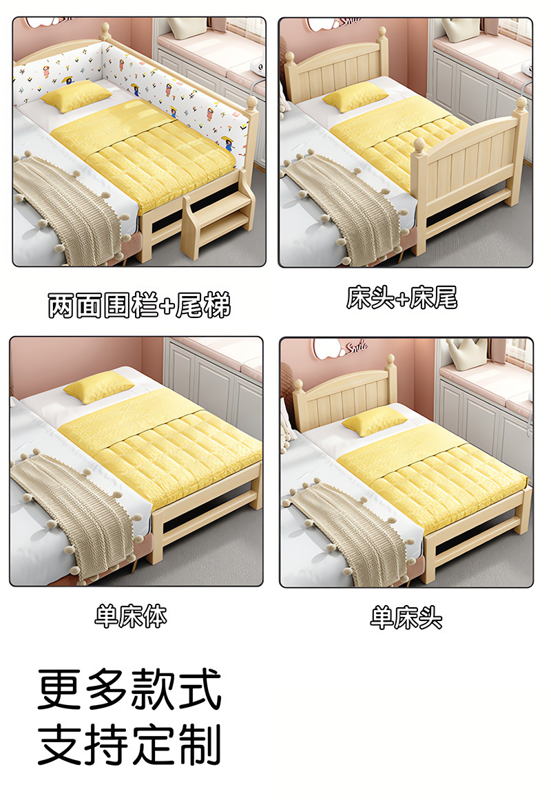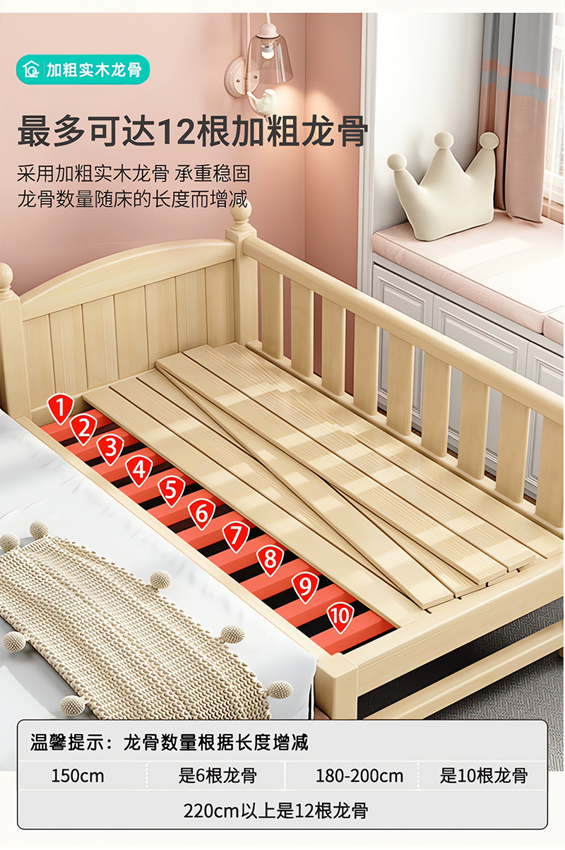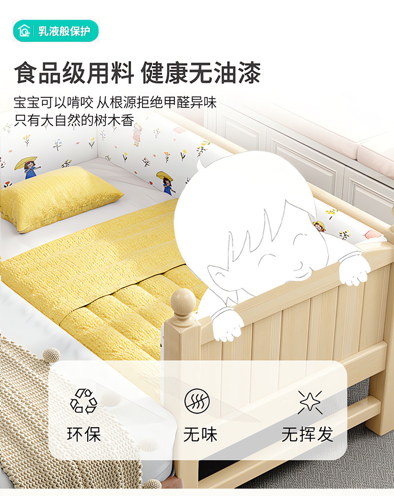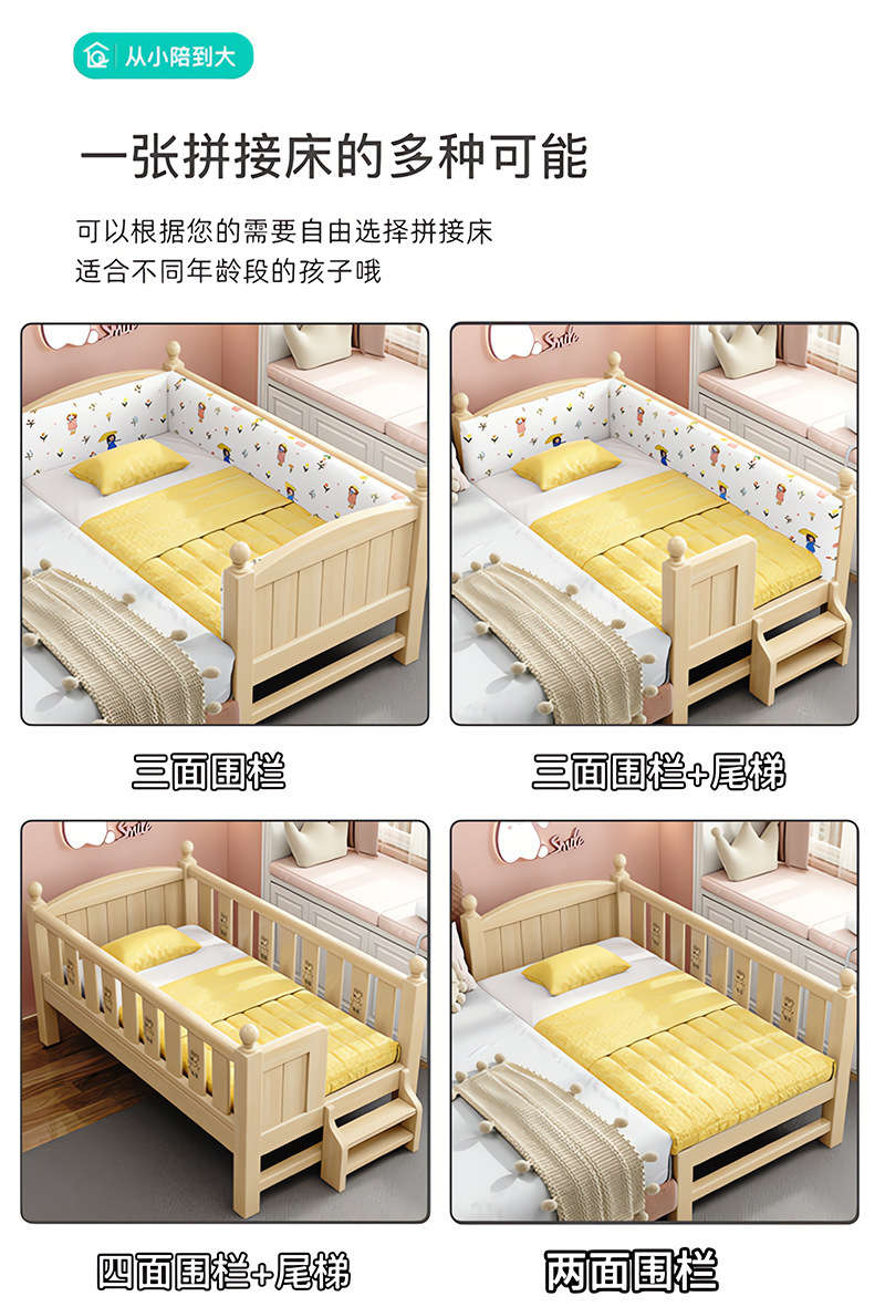 Детская кровать из массива дерева, детская кроватка, плоская кровать для мальчиков и девочек, расширенная боковая кровать для детской комнаты