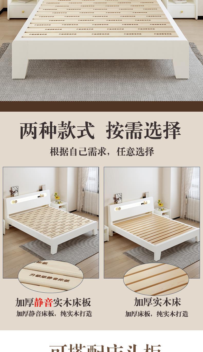 Кровать из массива дерева Белый Кремовый стиль 1.5м Домашняя Двуспальная Кровать 1.8 Главная спальня Экономичная Односпальная Каркас кровати для аренды