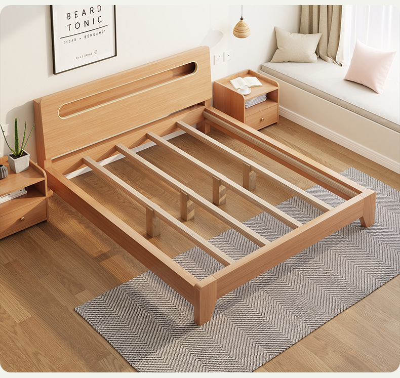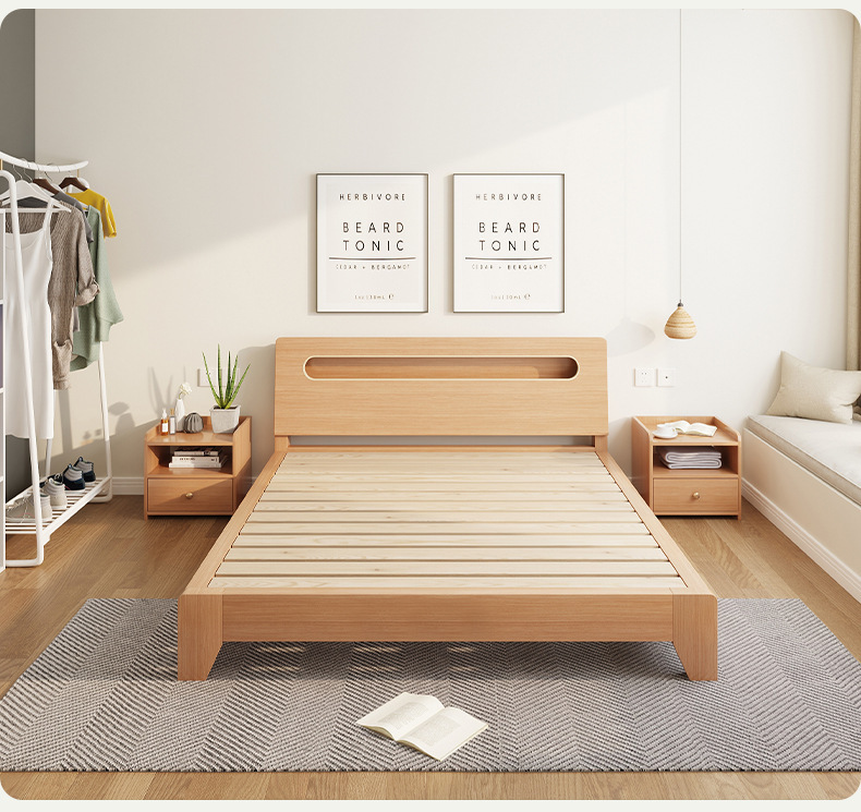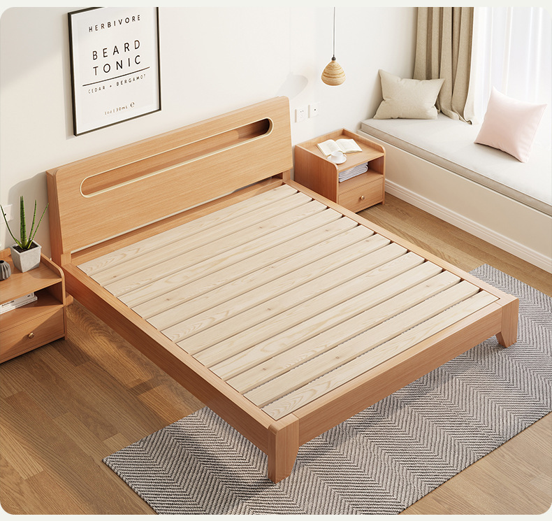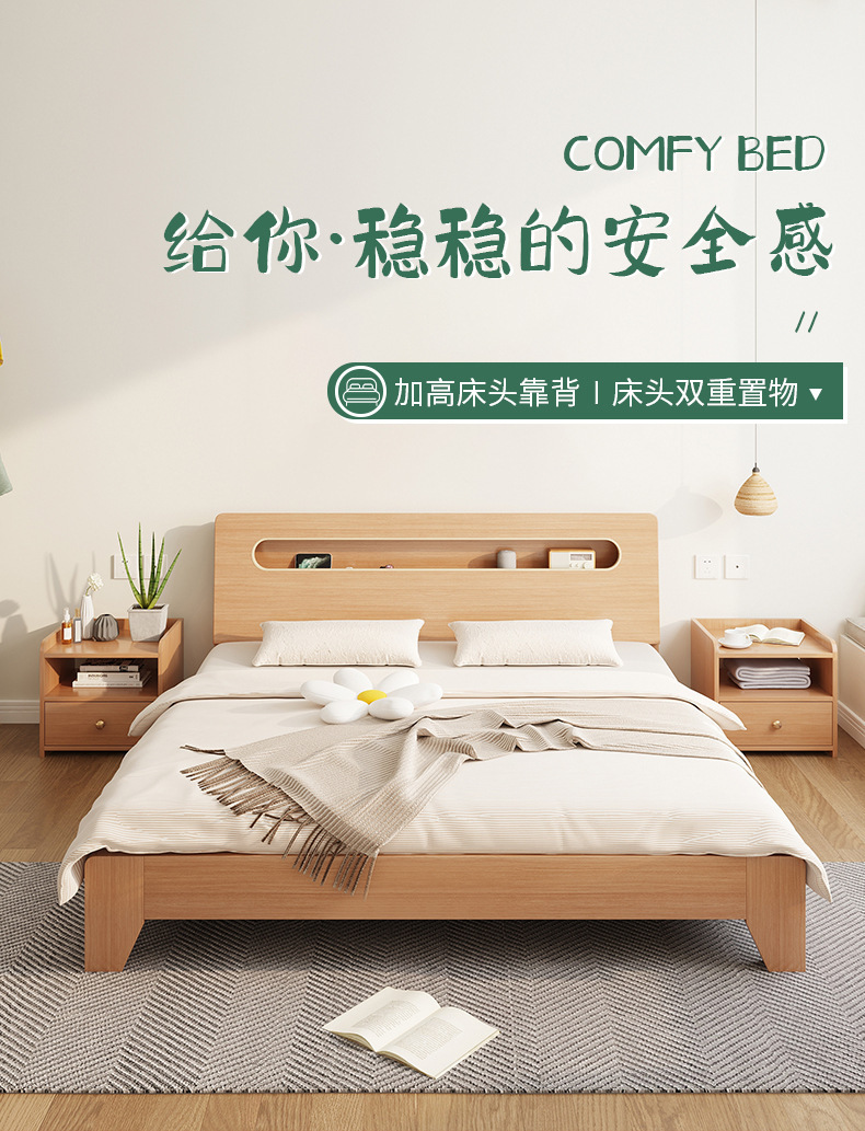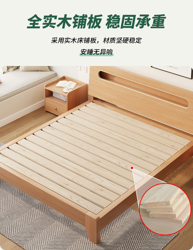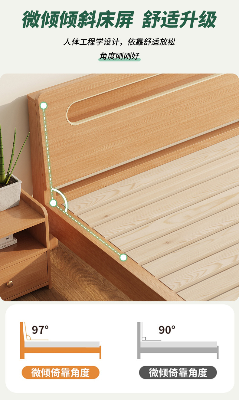 Современная простая кровать из массива дерева 1.5м для спальни, двуспальная кровать 1.8м, экономичная односпальная кровать 1.2м