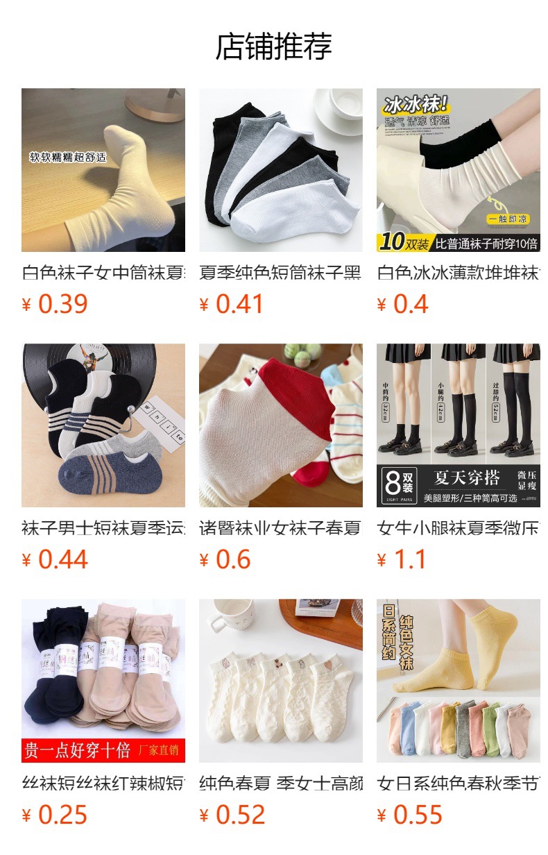 ![]() | 0126 invisible socks | One size fits all nude socks | ¥0.48 / ≈ 6 ₽ | 654645 | 6094461562586 | |