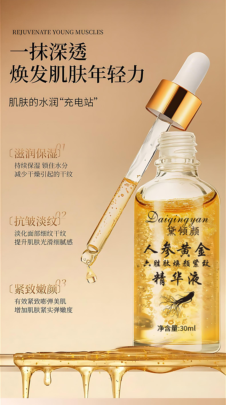 Название продукта Dai qingyan ginseng gold six peptides rejuvenating essence 30ml
