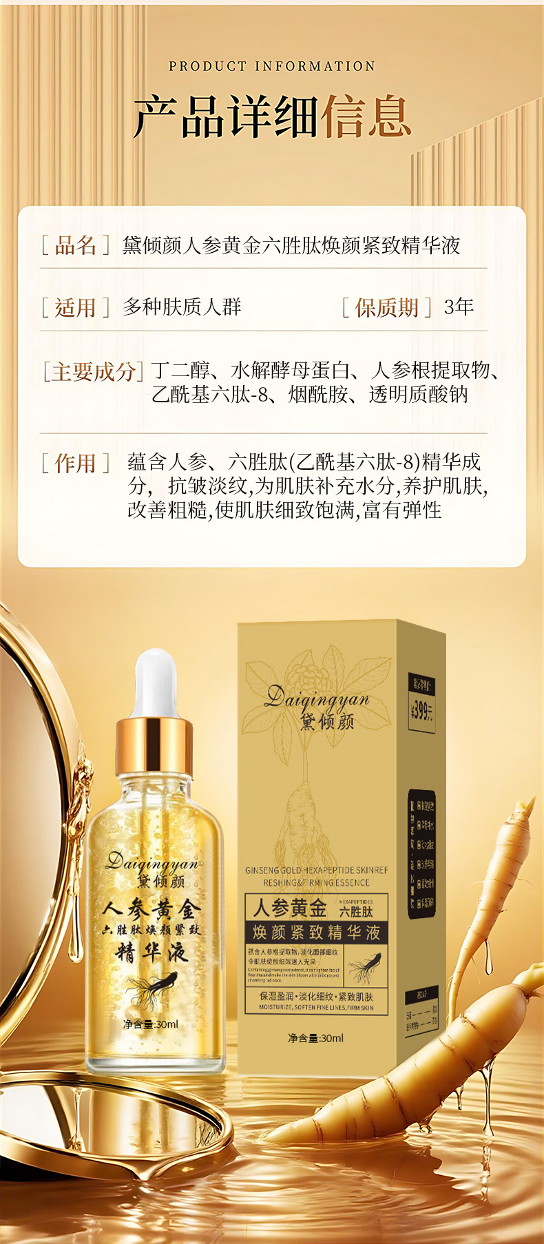 Специальное название косметического продукта Dai qingyan ginseng gold six peptides rejuvenating essence 30ml
