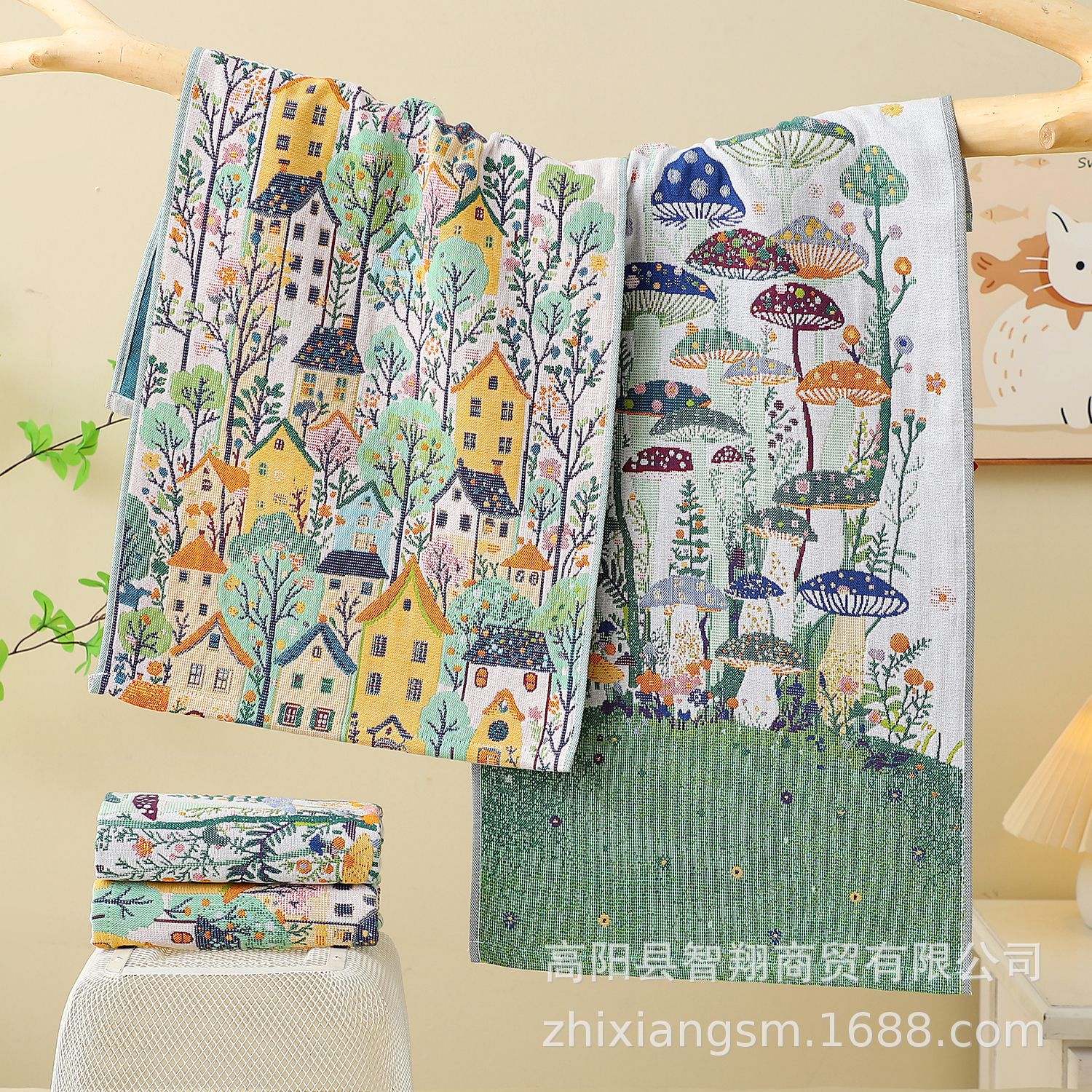 Мультяшное жаккардовое полотенце из четырехслойной хлопковой марли, мягкое и дышащее, подарок, большое полотенце для ванной
