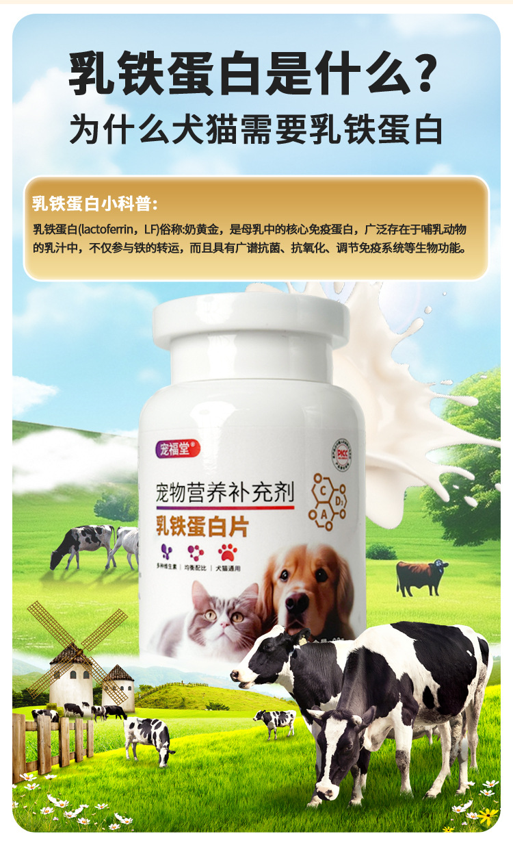 Таблетки лактоферрина для собак и кошек, уход за котятами и щенками, общий питательный добавка, белок и витамины