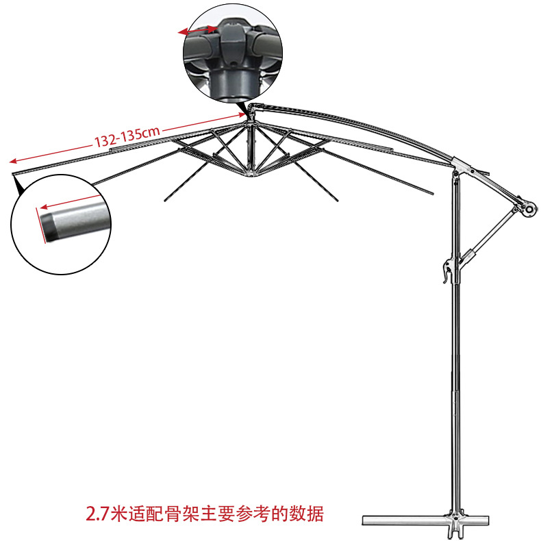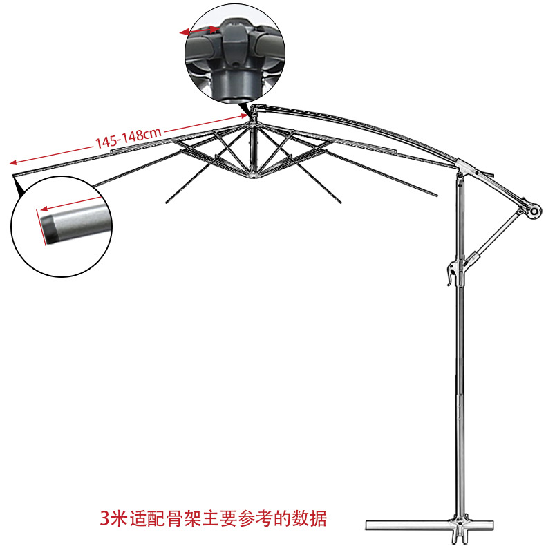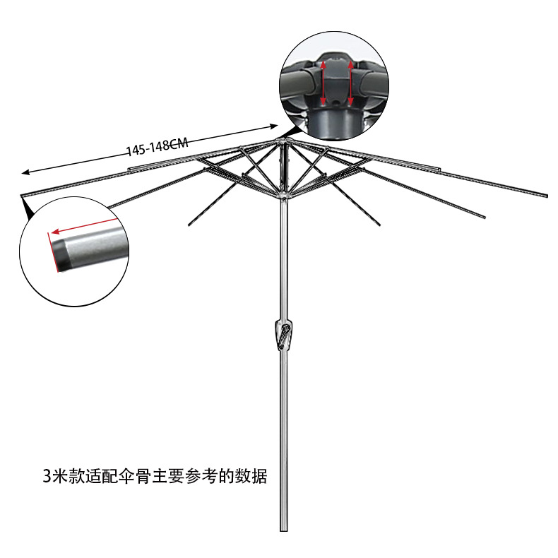 (直径3米的-适合小伞骨长度1.46-1.47米 直径2.7米的-适合小伞骨长度1.33-1.34米 、直径2米的-适合小伞骨长度是98-99CM)