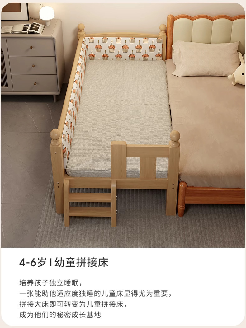 Детская кровать с бортиками, без покраски, цельнодеревянная, бесшовная, расширенная