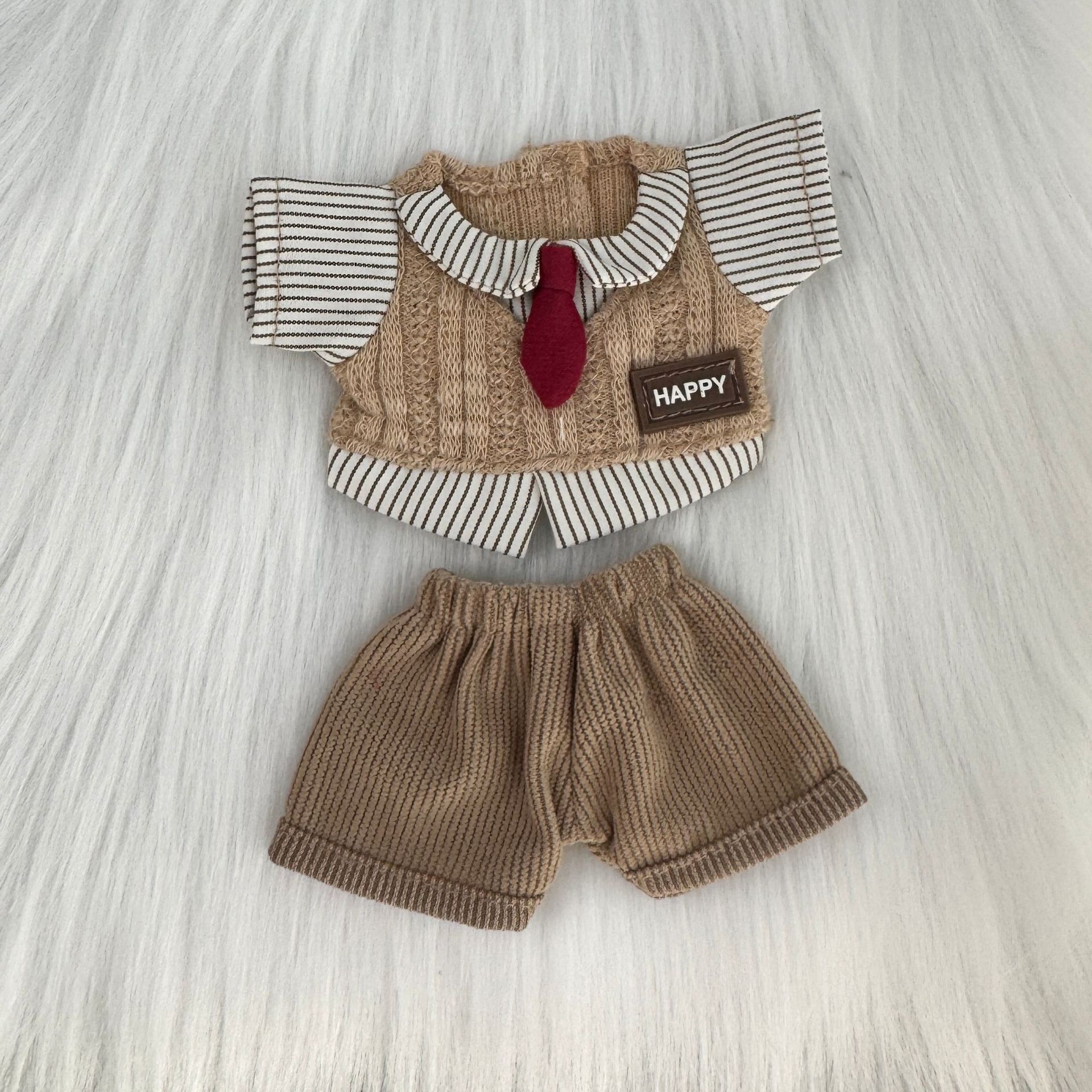 Подходит для кукол Labubu 15-17 см, британский фальшивый двухпредметный костюм, коричневый вязаный костюм с запасной одеждой