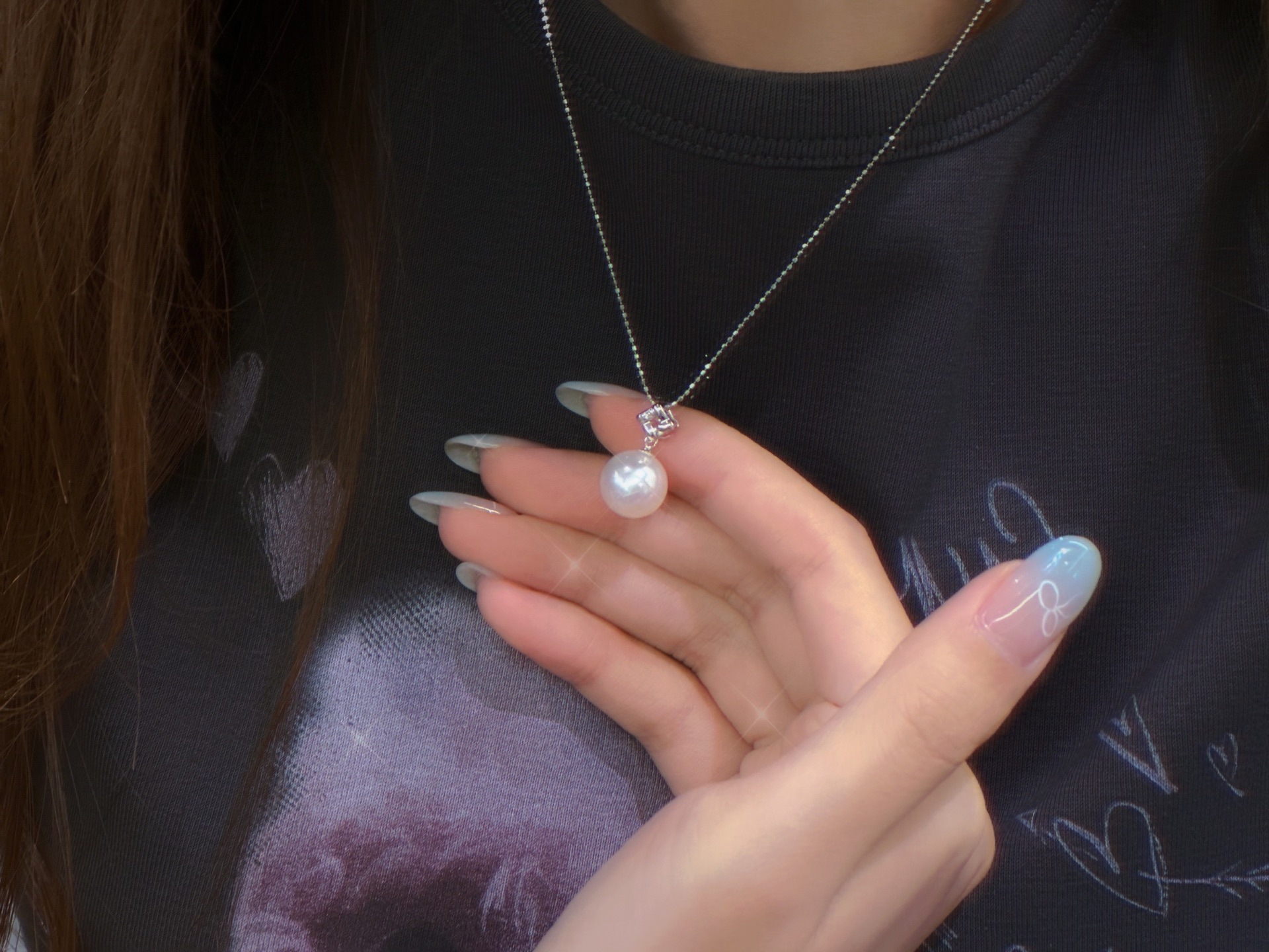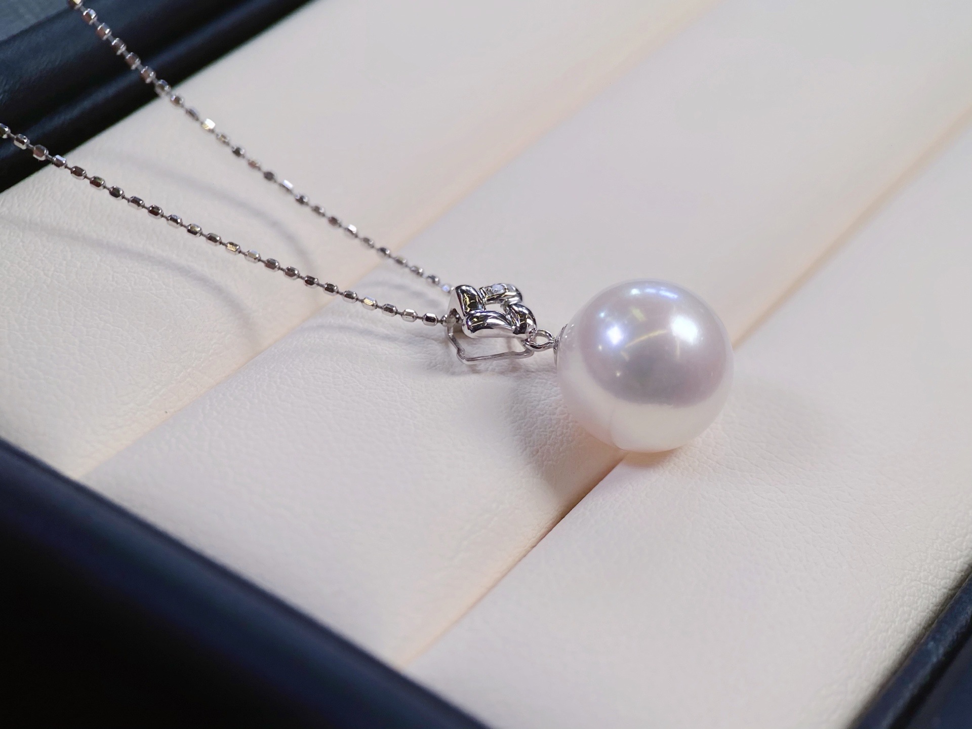 Аксессуары из платины Pt900 Кулон с бриллиантом D 0.005Ct, изображение с бусинами 10-11мм