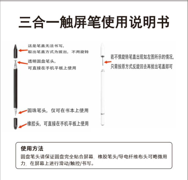 Трехв один сенсорный емкостной стилус, универсальный стилус для iPad, планшета, телефона, подходит для Apple, Huawei, Xiaomi, ручка для рисования