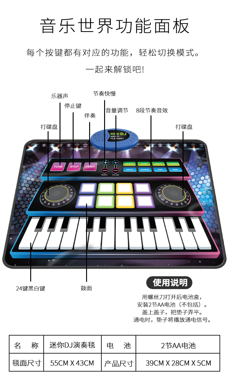 Образовательная игра с диском и барабанами для детей, музыкальный коврик, электронная клавиатура, набор барабанов для детского сада