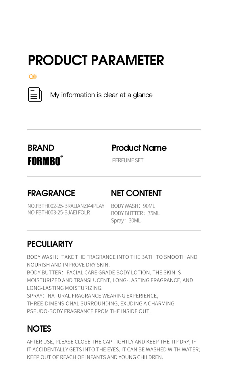 Эксклюзивный Cross-Border Formbo Духи Лосьон для Тела Гель для Душа Три в Одном Ароматизирующий Лосьон Увлажняющий Уход Глубокое Очищение