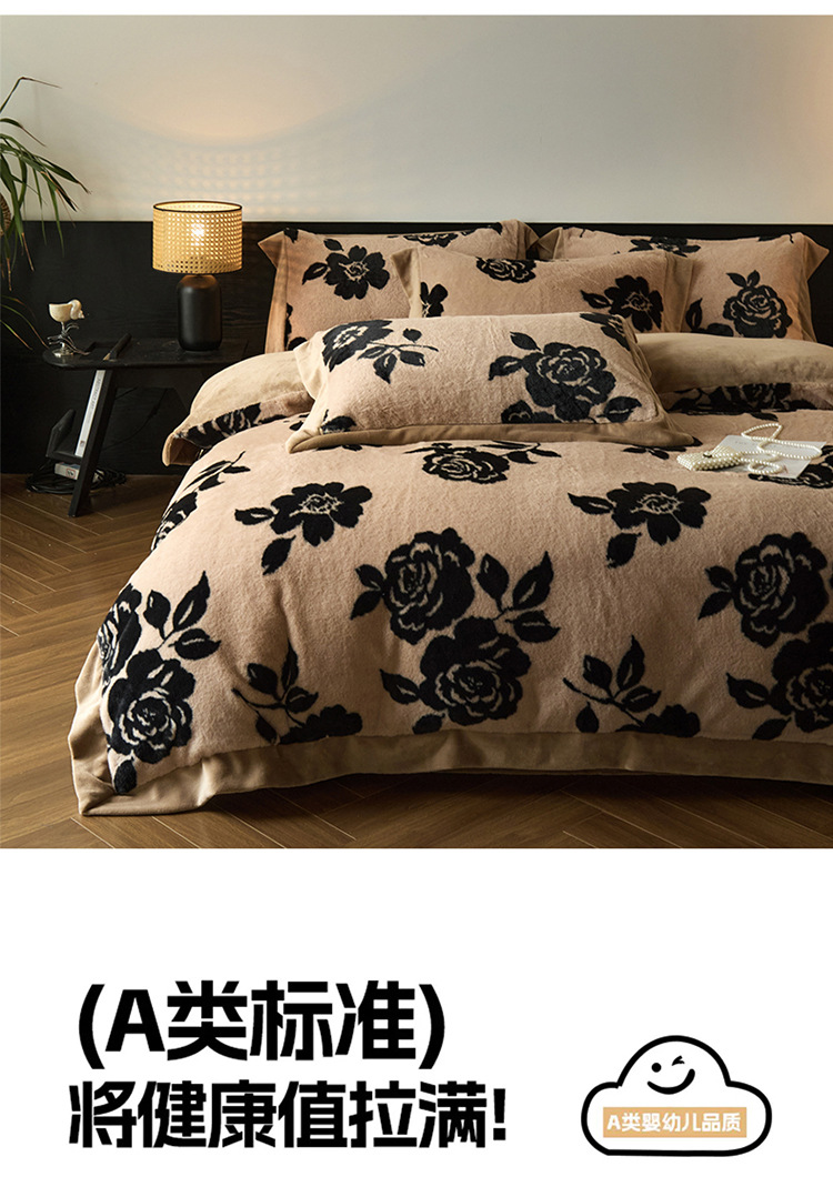 Новый осенне-зимний комплект из четырех предметов Milk Velvet, принтованный, утолщенный, теплый, теперь доступен, антистатический, моющийся