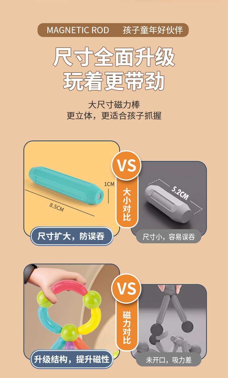 Обновленная версия многофункциональных магнитных палочек Wanlehui, сильные магнитные крупные строительные блоки, игрушки для раннего обучения для детей и младенцев, оптовый производитель