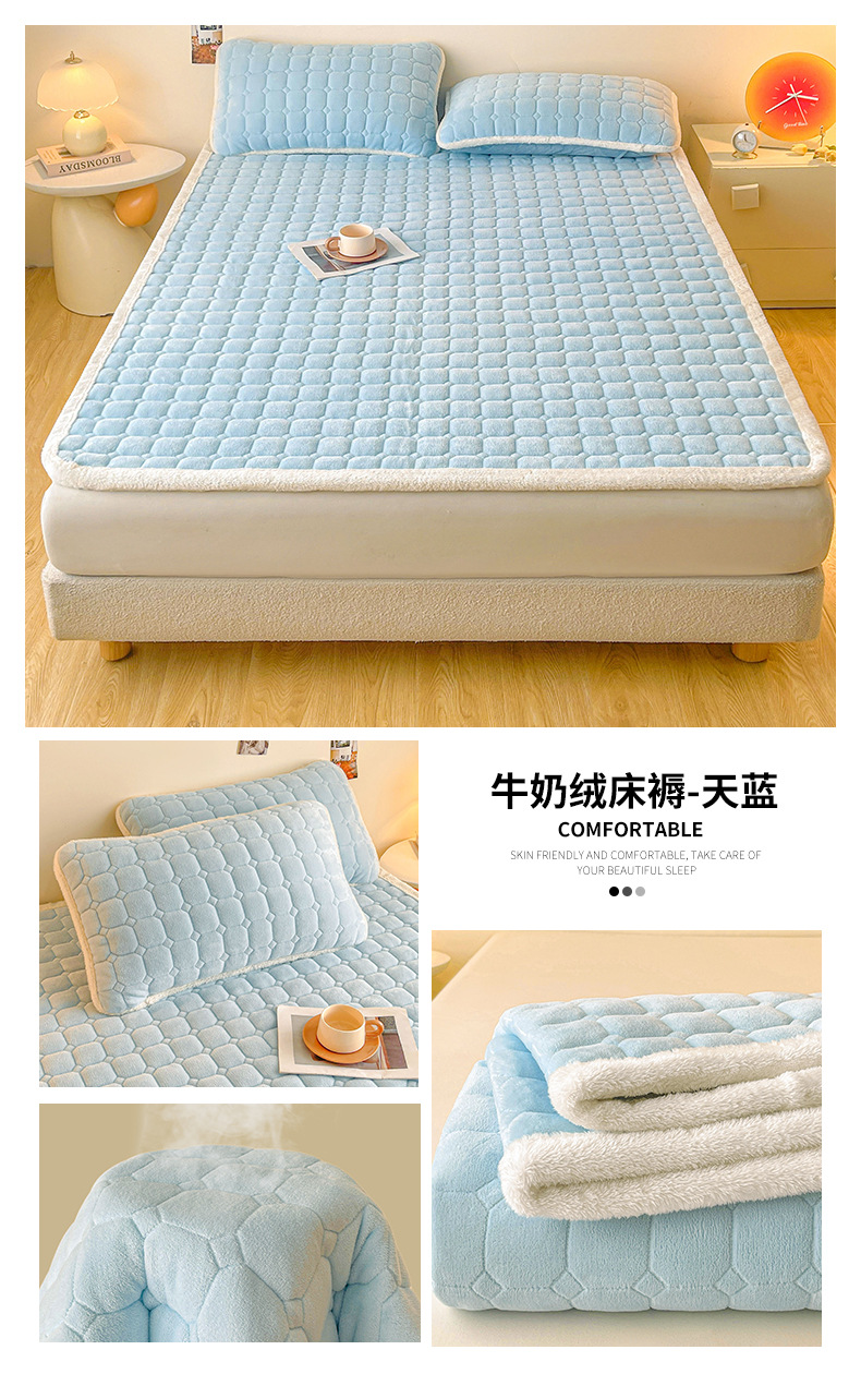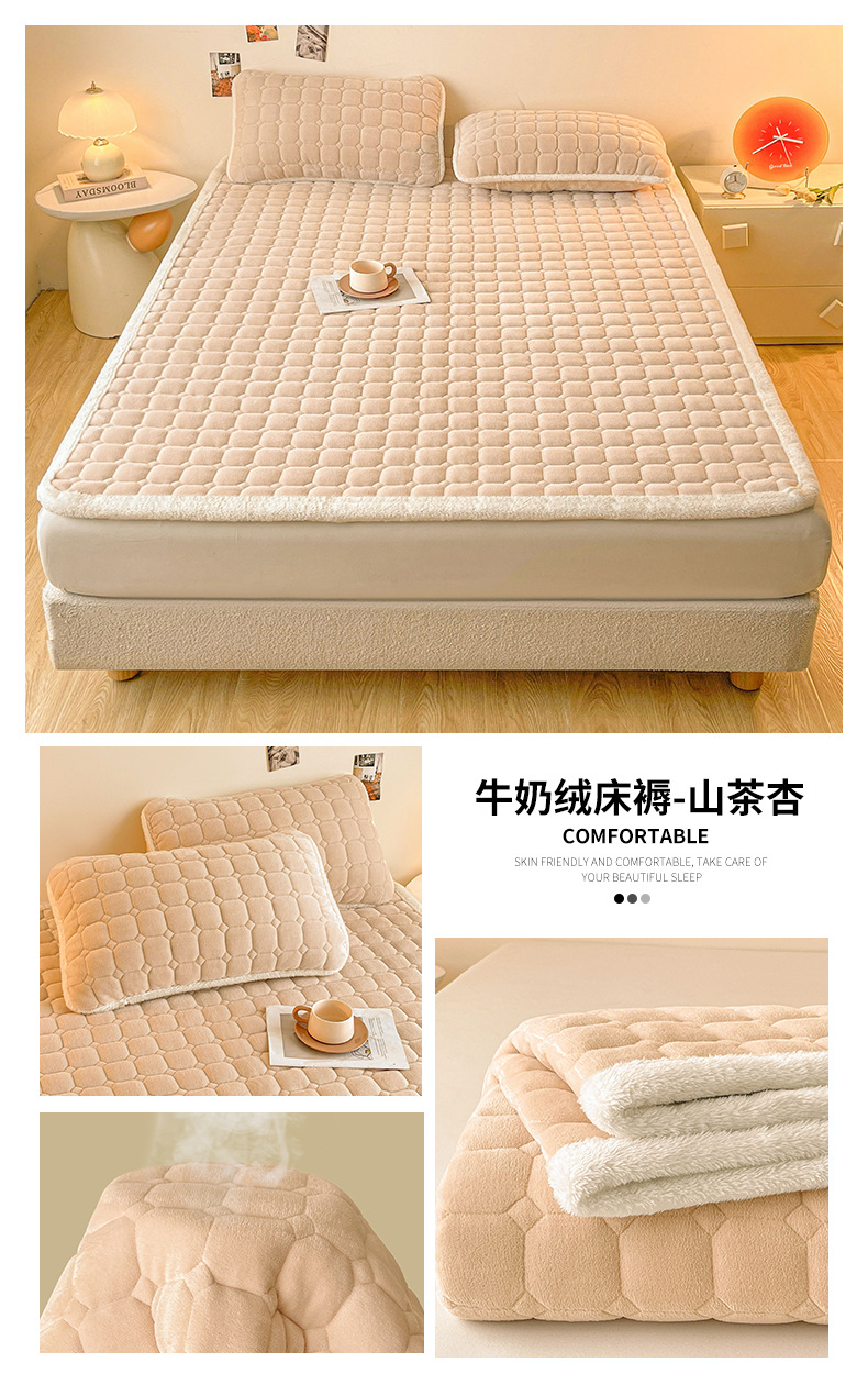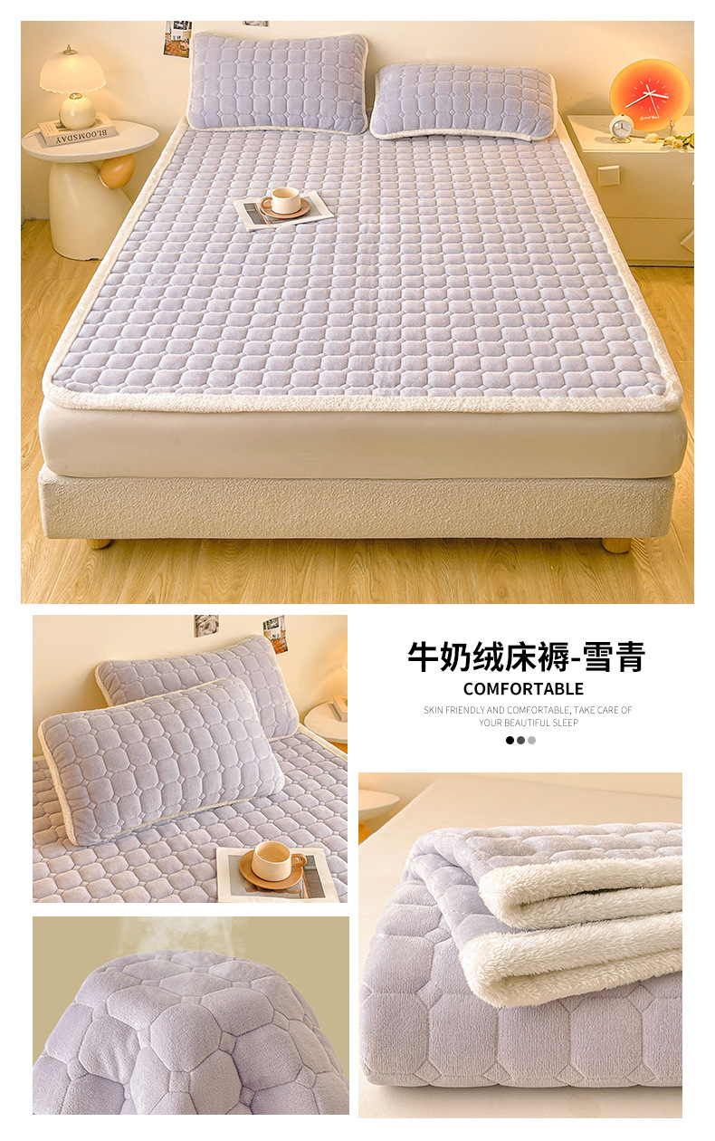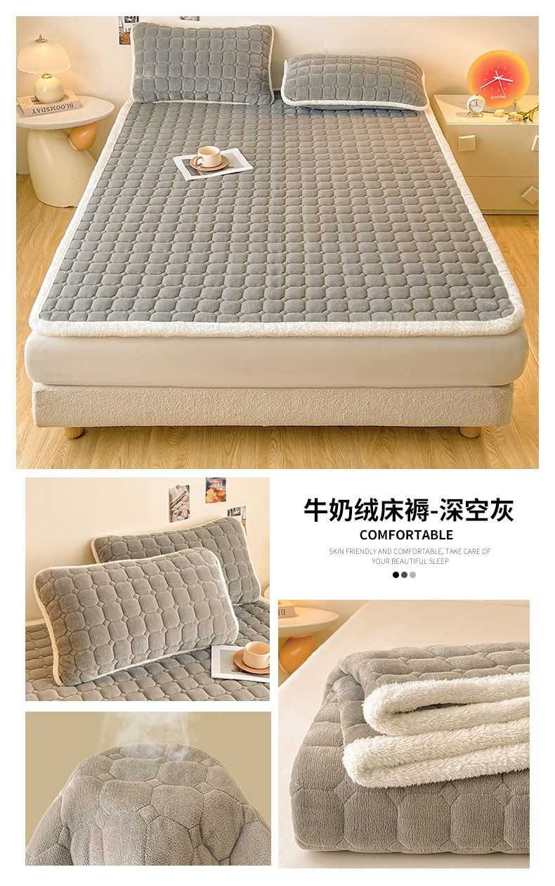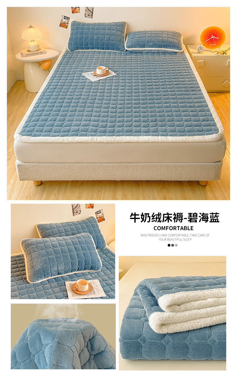 Утолщенный защитный чехол для матраса из молочного бархата, зимняя теплая домашняя подушка для матраса, одеяло, комплект из трех предметов кораллового бархата, покрывало для кровати