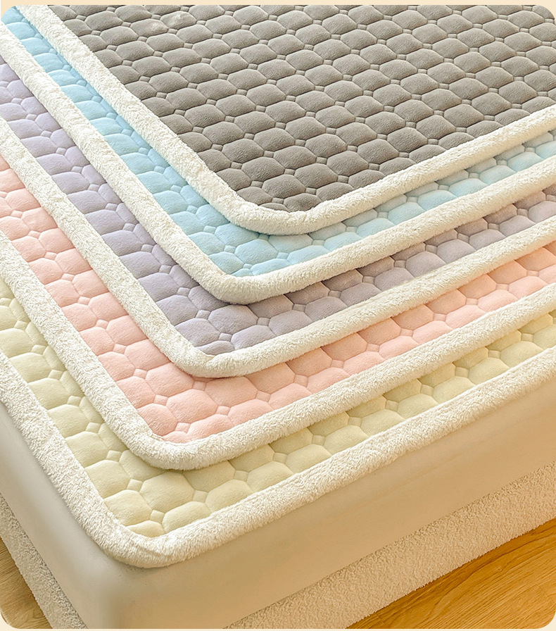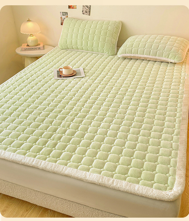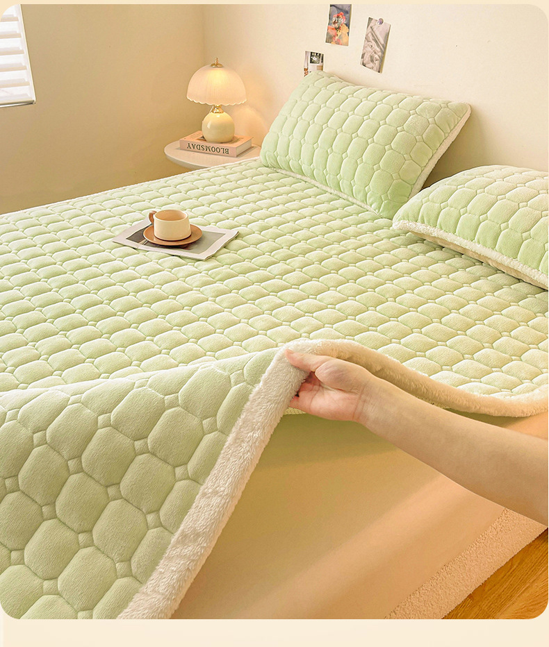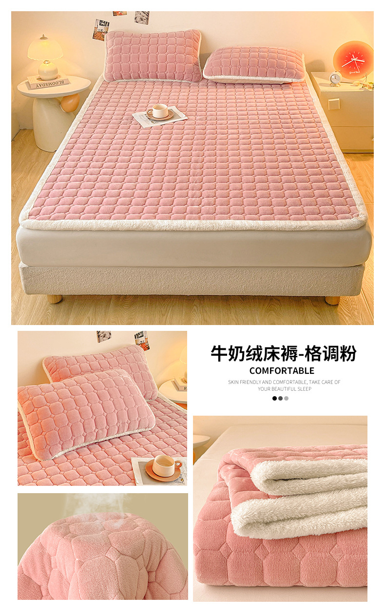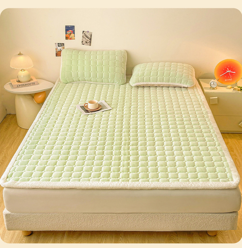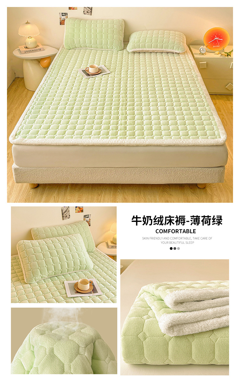 Утолщенный защитный чехол для матраса из молочного бархата, зимняя теплая домашняя подушка для матраса, одеяло, комплект из трех предметов кораллового бархата, покрывало для кровати