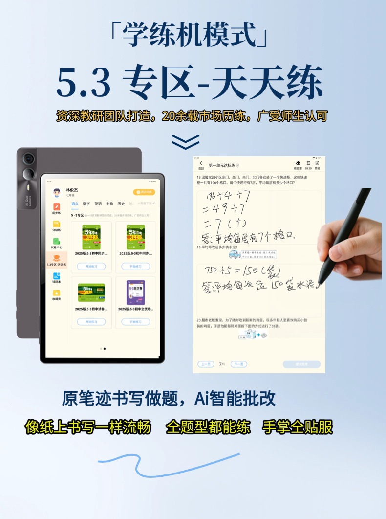 Новая обучающая машина поддерживает оригинальный почерк для вопросов приложений. Известные учителя ИИ предоставляют индивидуальное обучение на планшете.