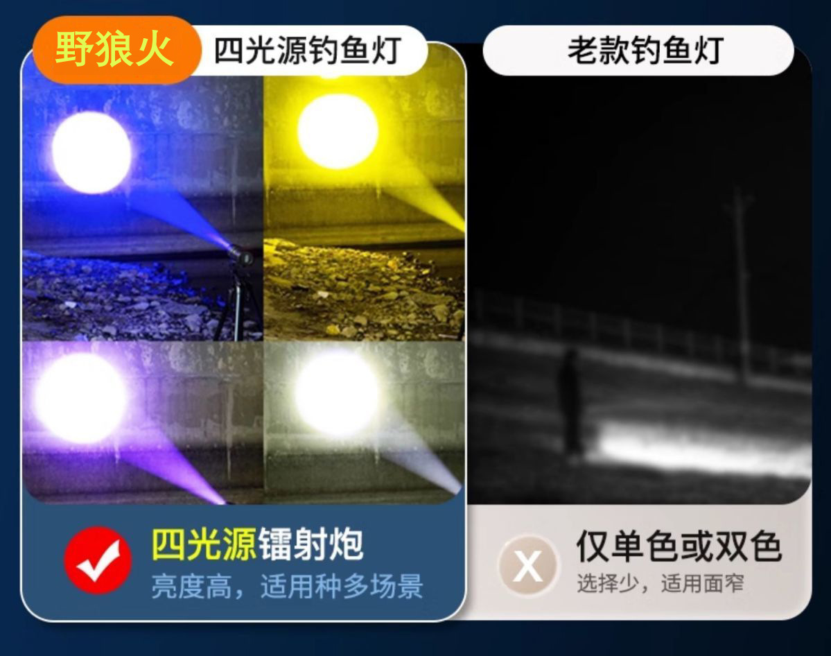 Ночной рыболовный свет, синий свет, ксеноновая лампа, супер яркий, четыре источника света, зум-рыболовный свет, высокомощный лазерный турретный рыболовный свет, дикий рыболовный свет