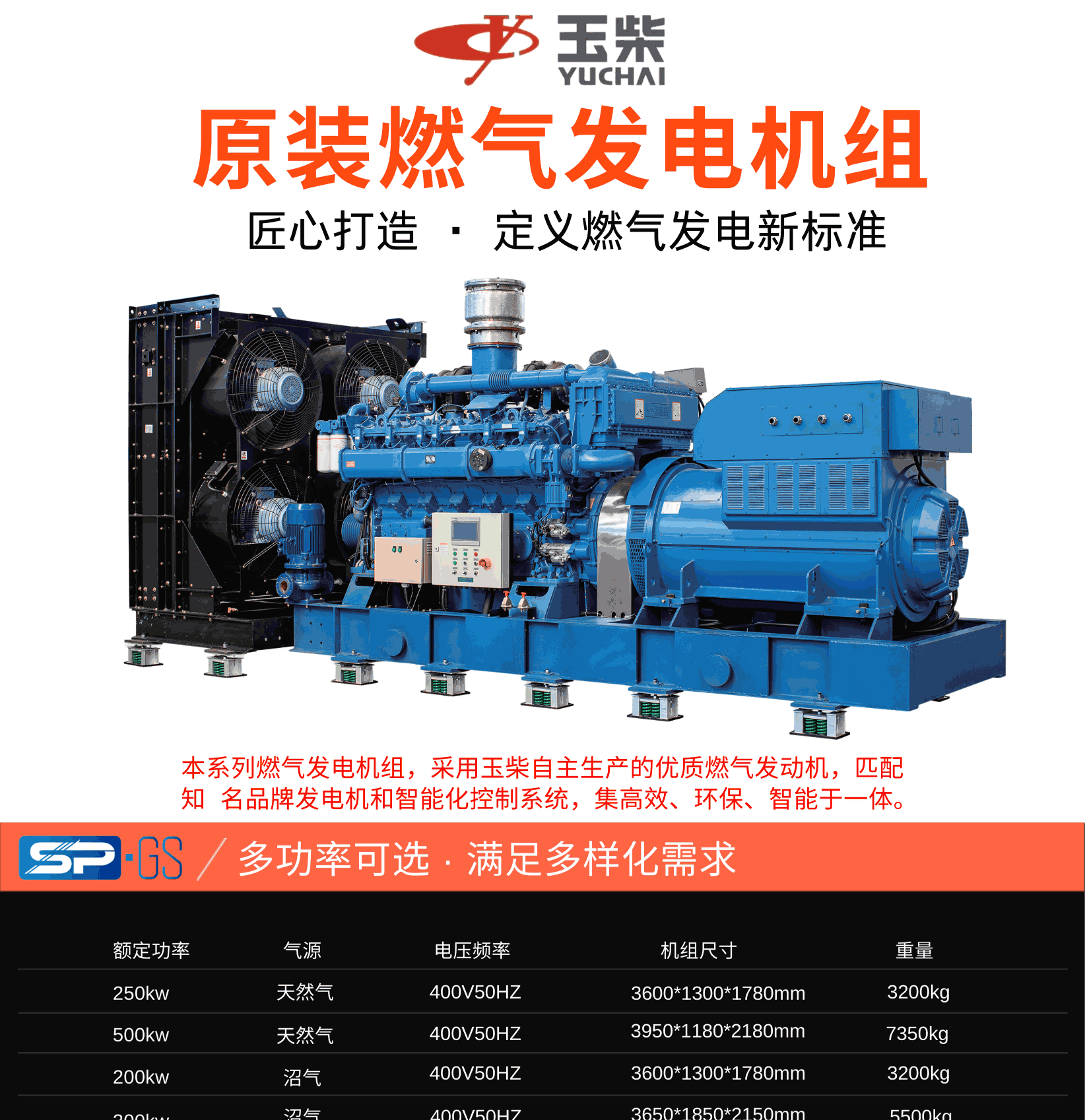 Оригинальная генераторная установка Yuchai на природном газе, биогазе, угольном газе, с параллельным подключением и высокой мощностью