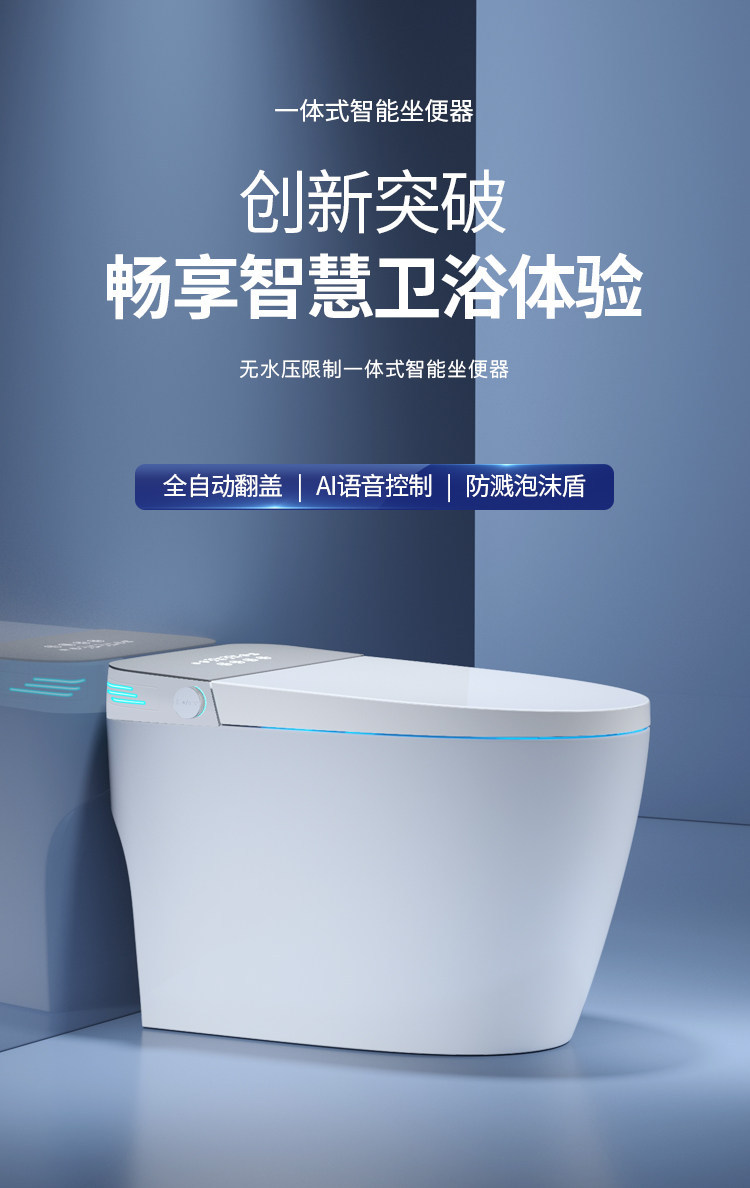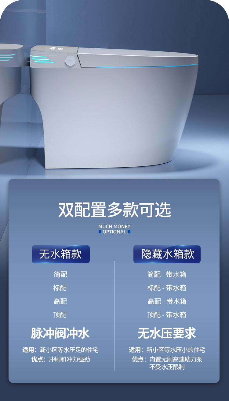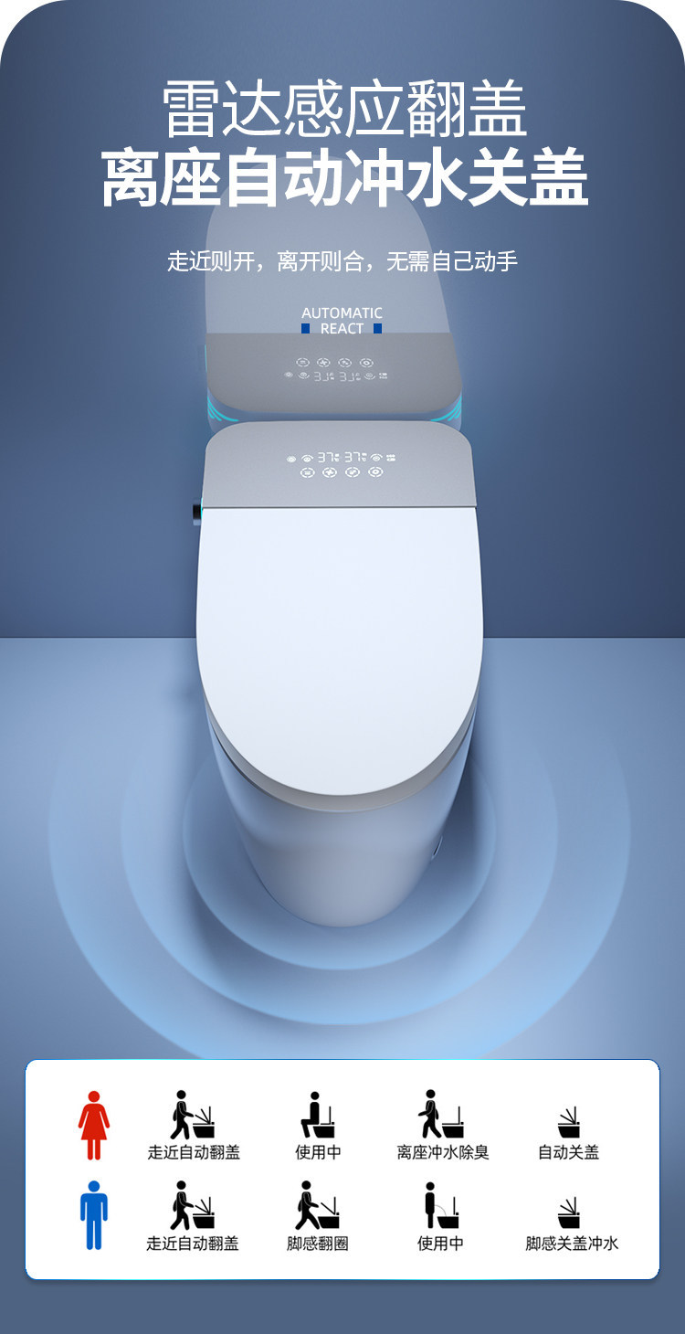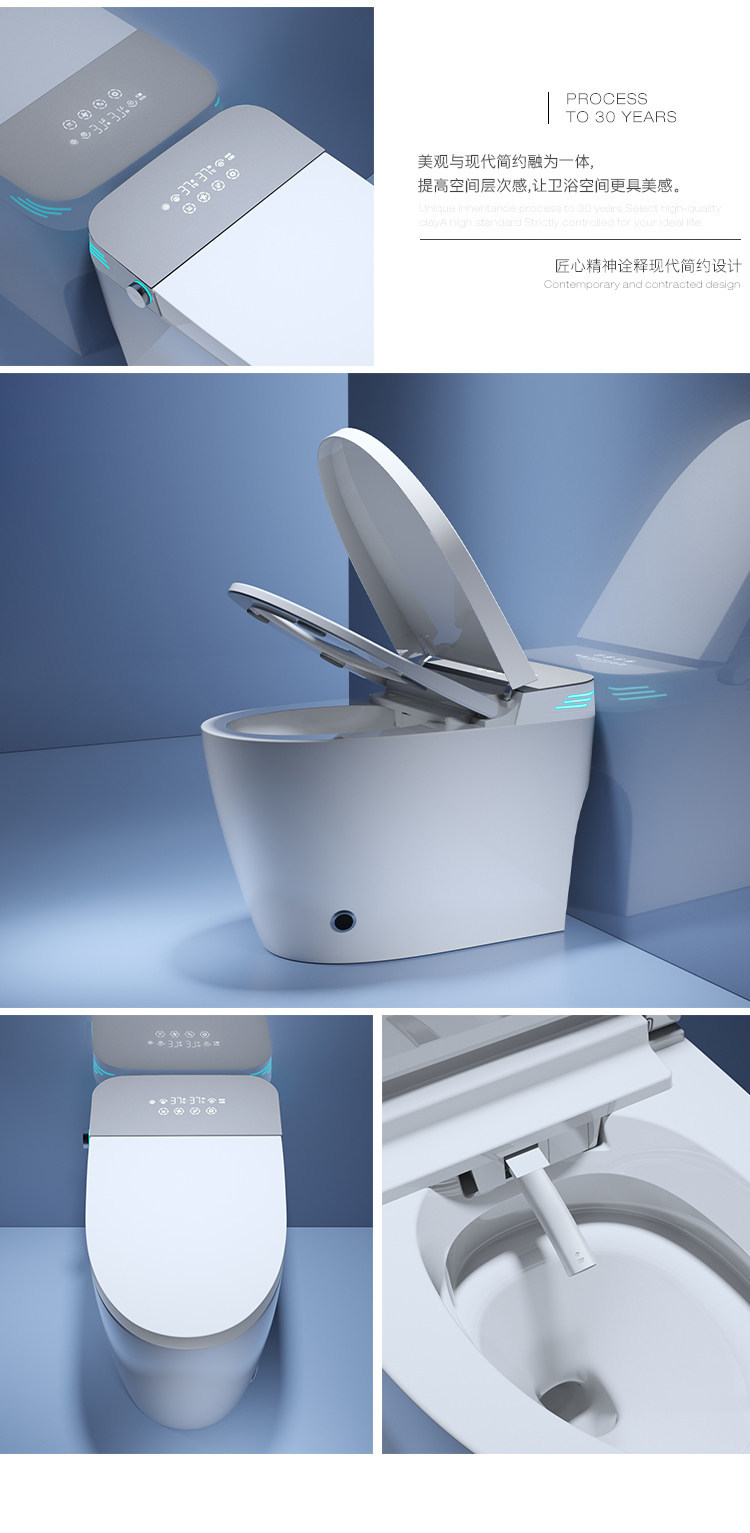 Умный туалет с серым экраном для домашнего использования, полностью автоматический, интегрированный, без ограничения давления воды, встроенная защита от пены, ароматерапевтическое сиденье