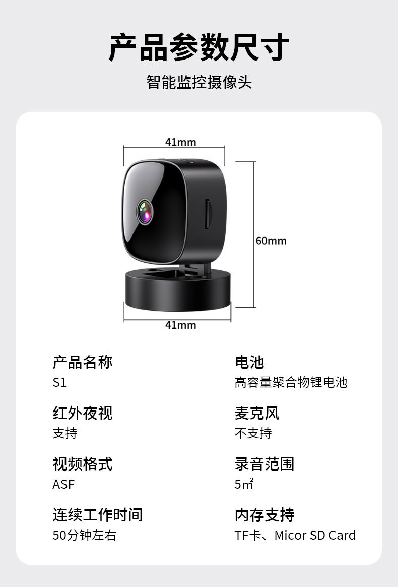 1 миллион пикселей HD объектив S1 смарт Wi-Fi камера спортивная камера с интерфейсом Type-C и широким углом