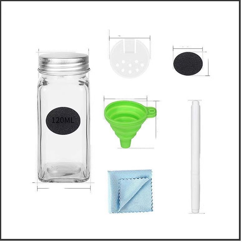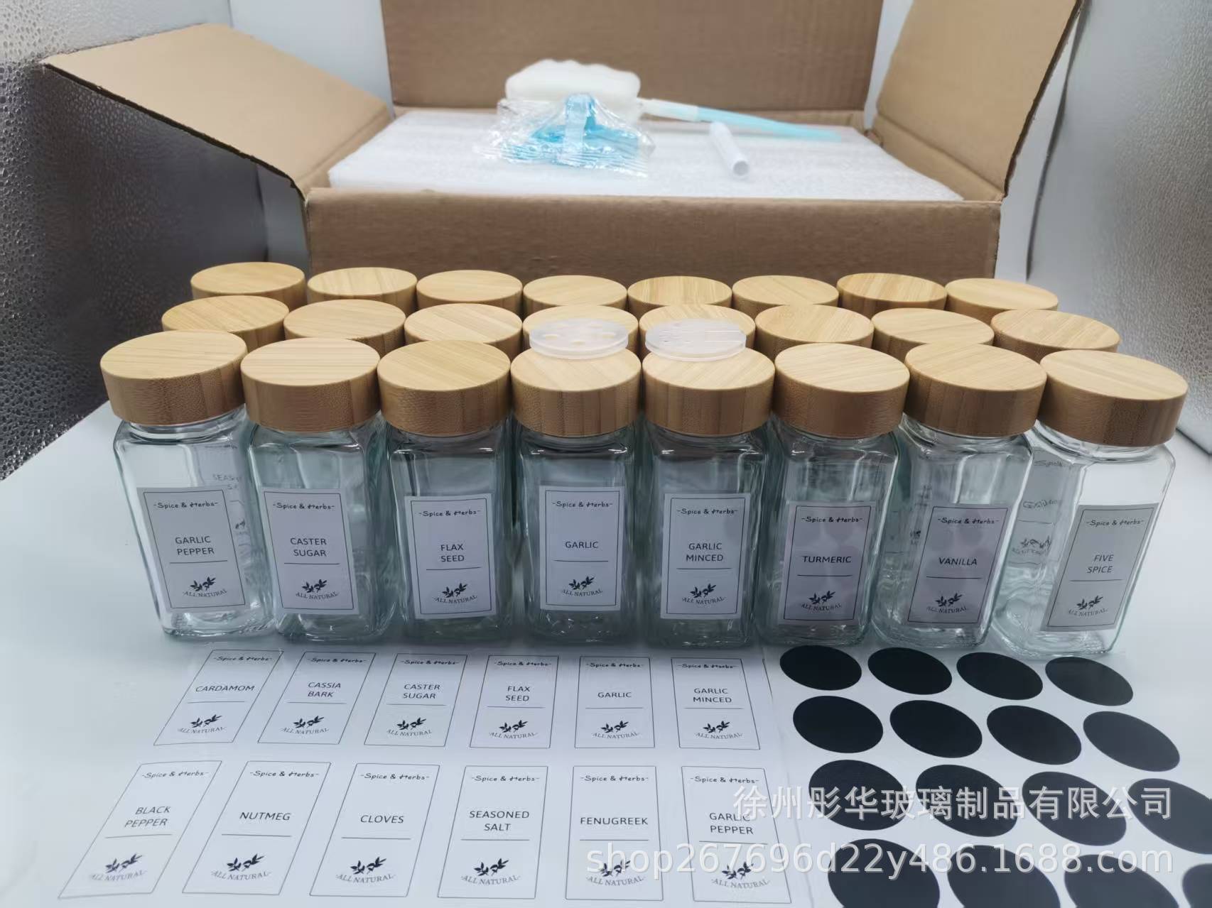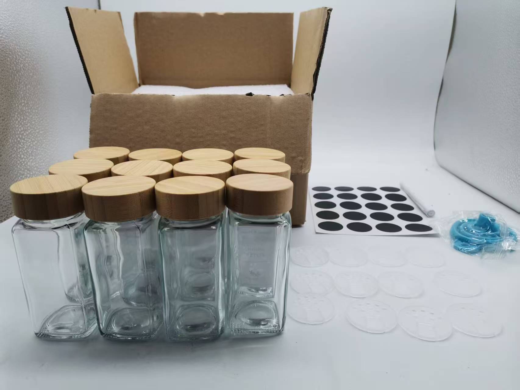 Квадратная бутылка для приправ 4oz, 120ml, набор из 12 штук, бутылка с крышкой из бамбука, банка для приправ