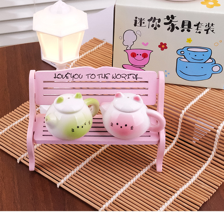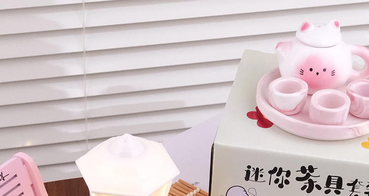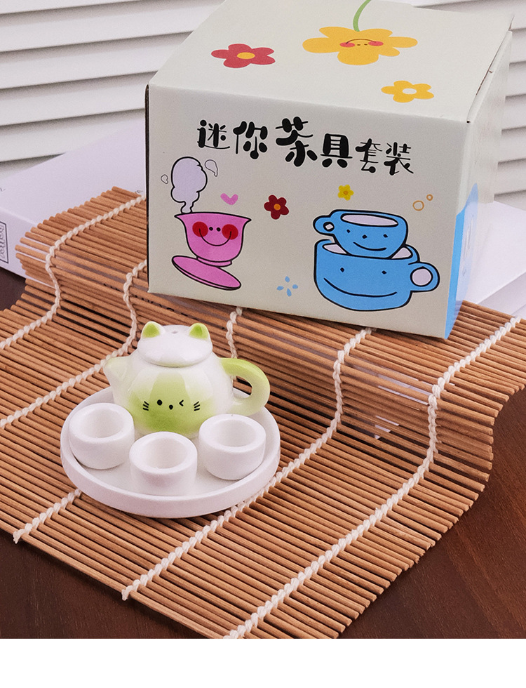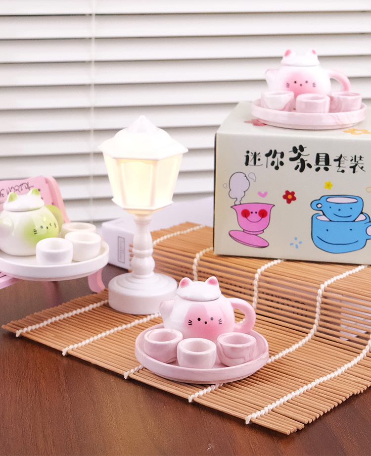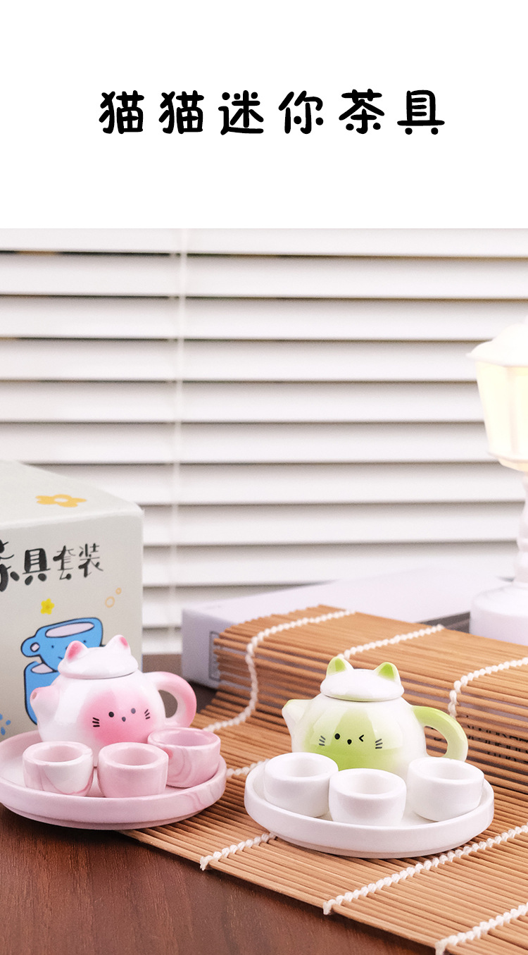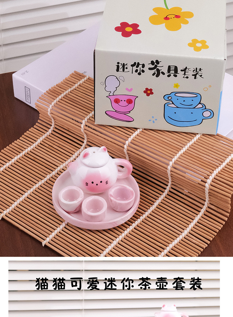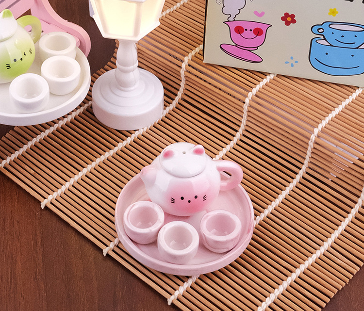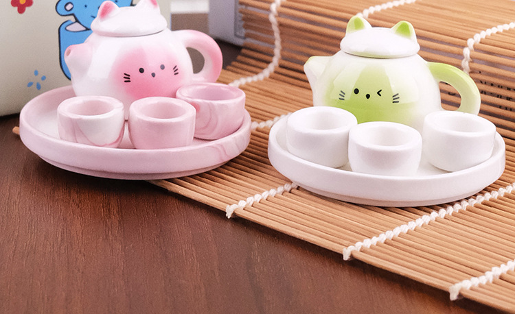 Мини чайник набор для чая милой формы кота керамический игрушечный подарок
