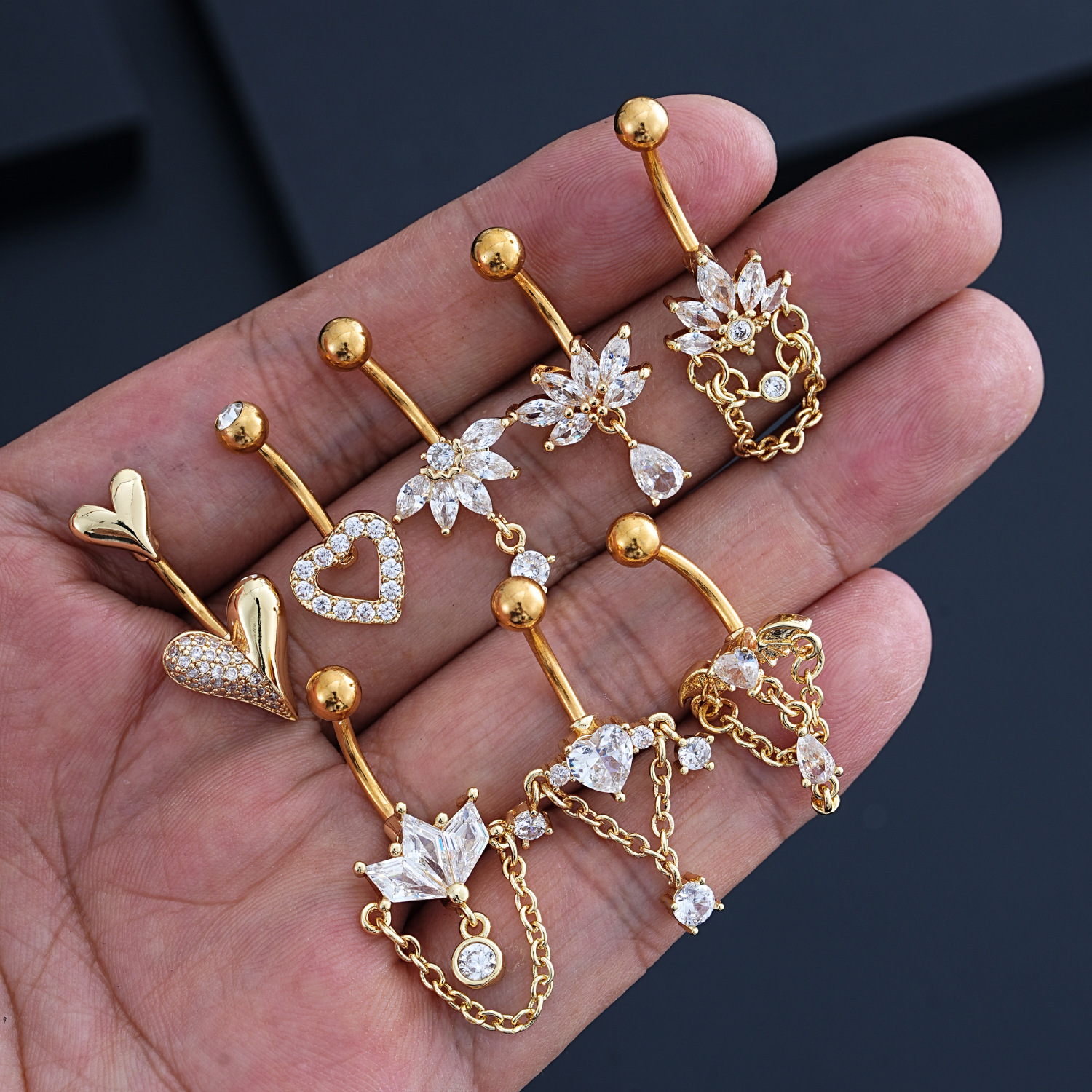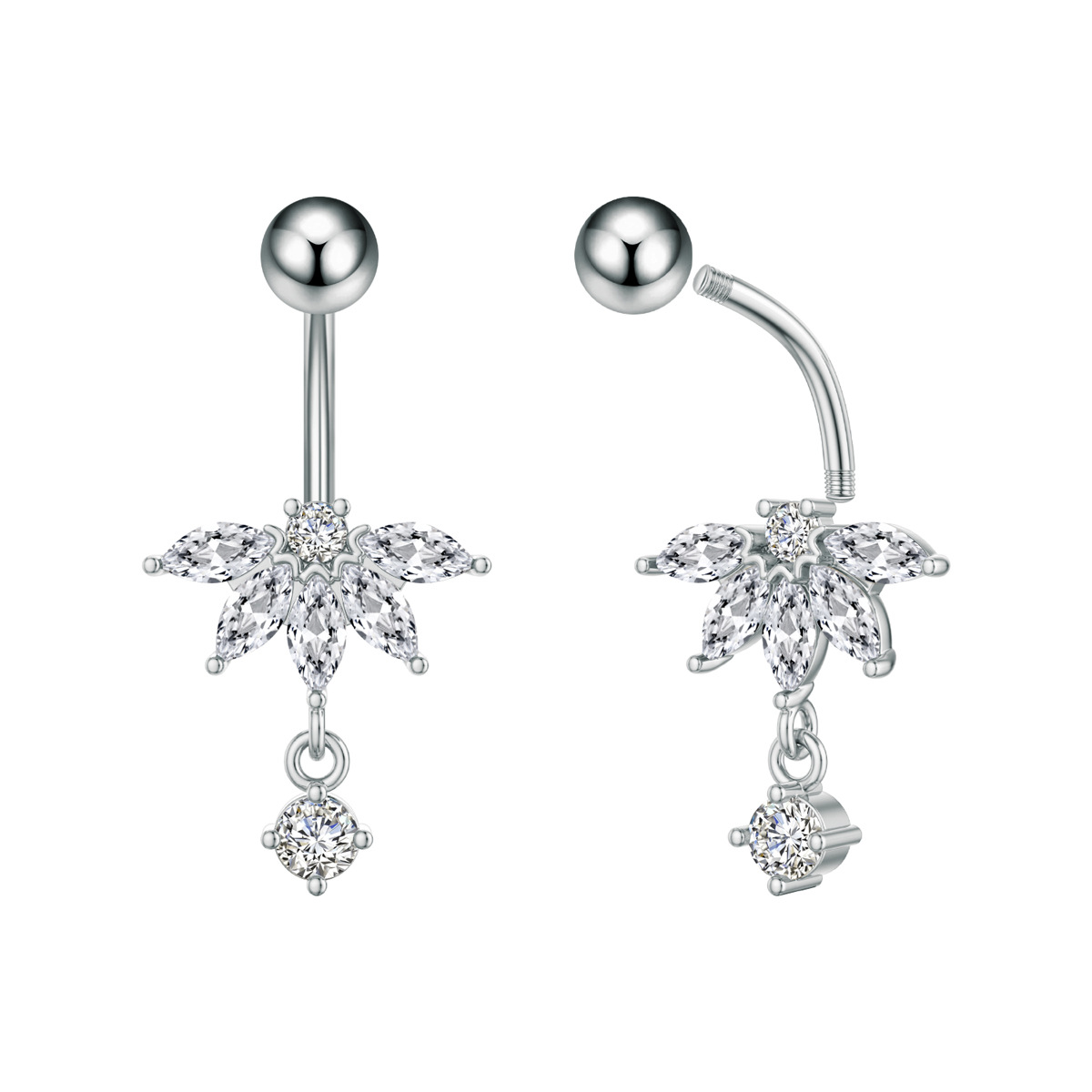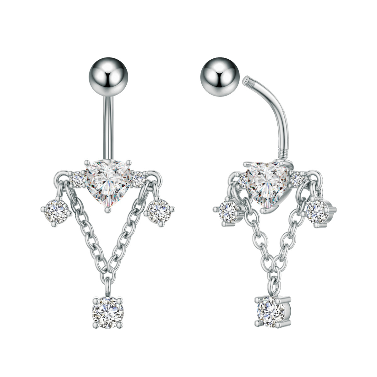 Кросс-бордовая новая серьга для пупка из нержавеющей стали, сердечко с микро-гранеными цирконами, цепочка с марquise, пирсинг