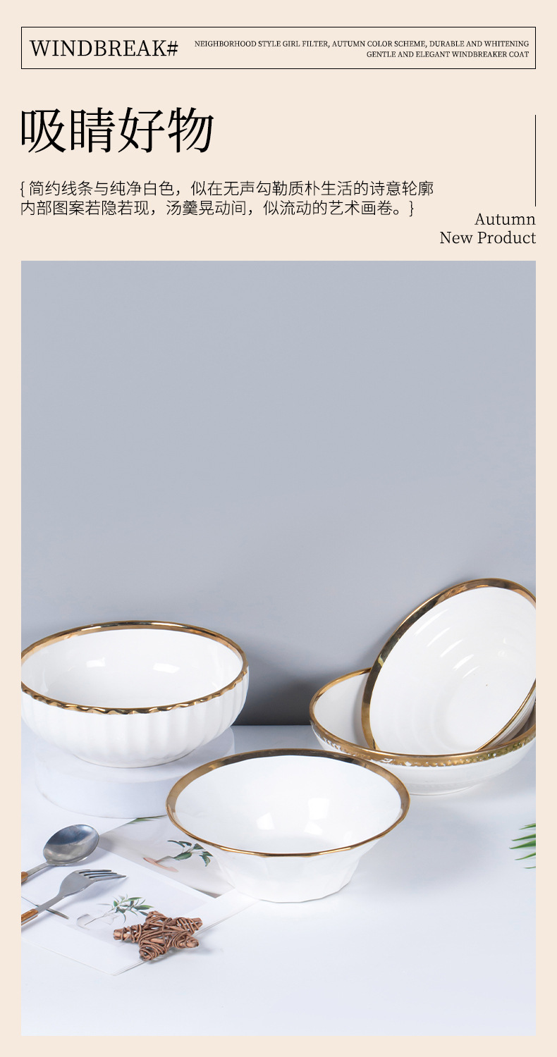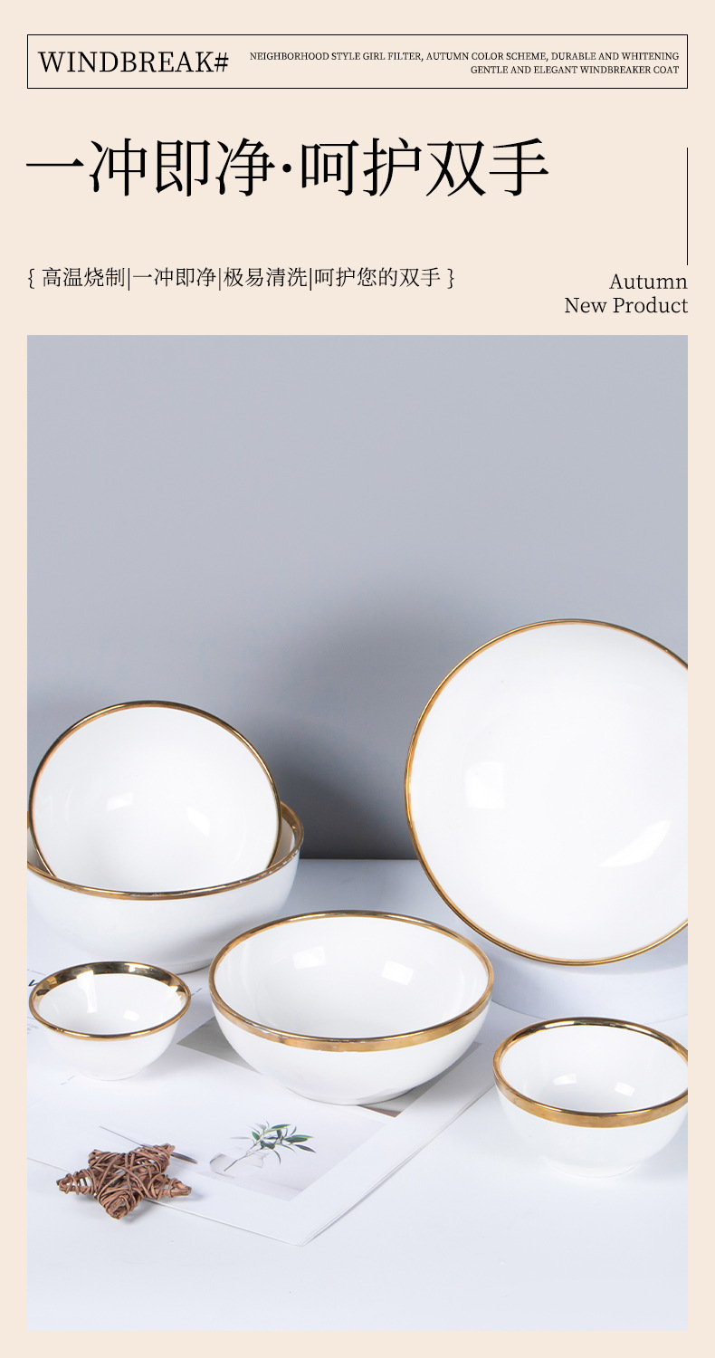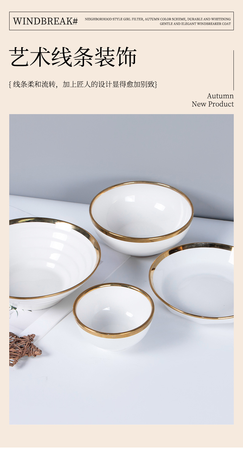 Новая серия керамических суповых чаш с электропокрытием золота 2026 года, легкая роскошь в скандинавском стиле, креативная посуда, оптовая продажа салатниц