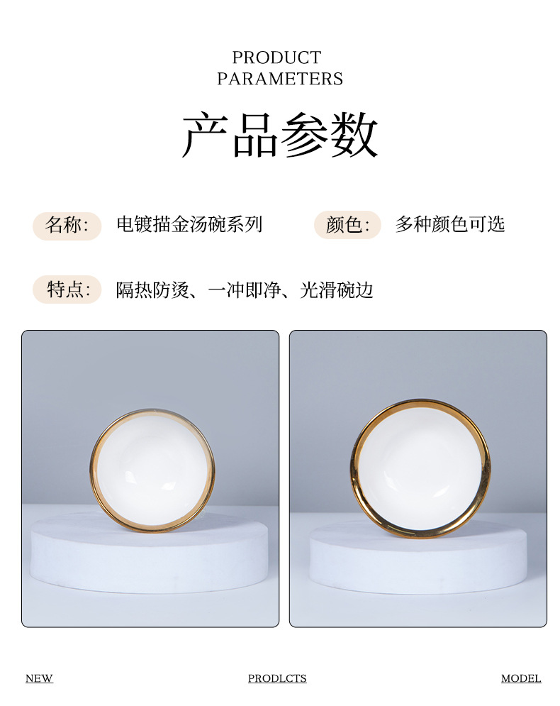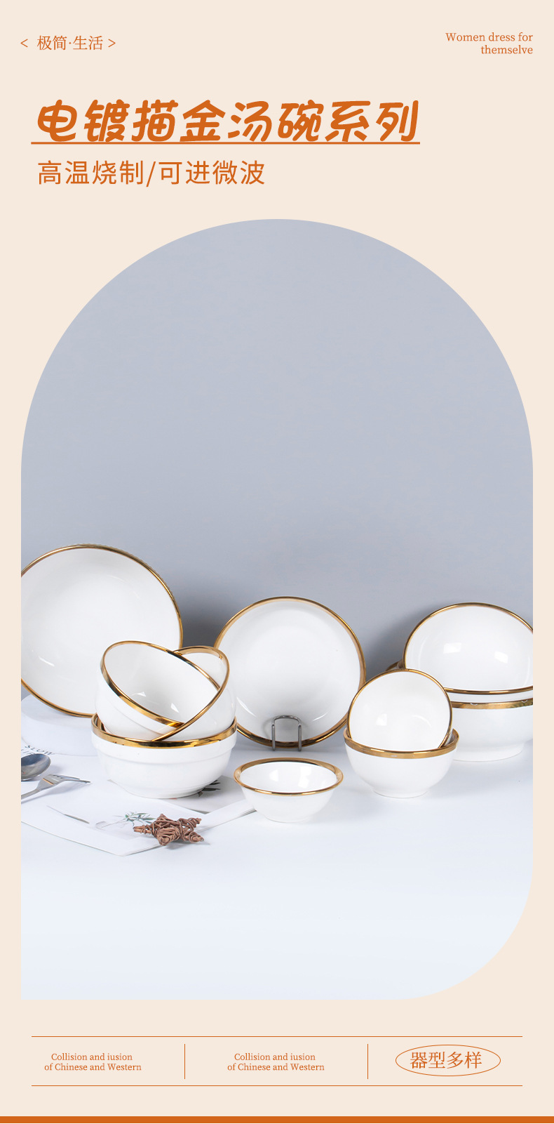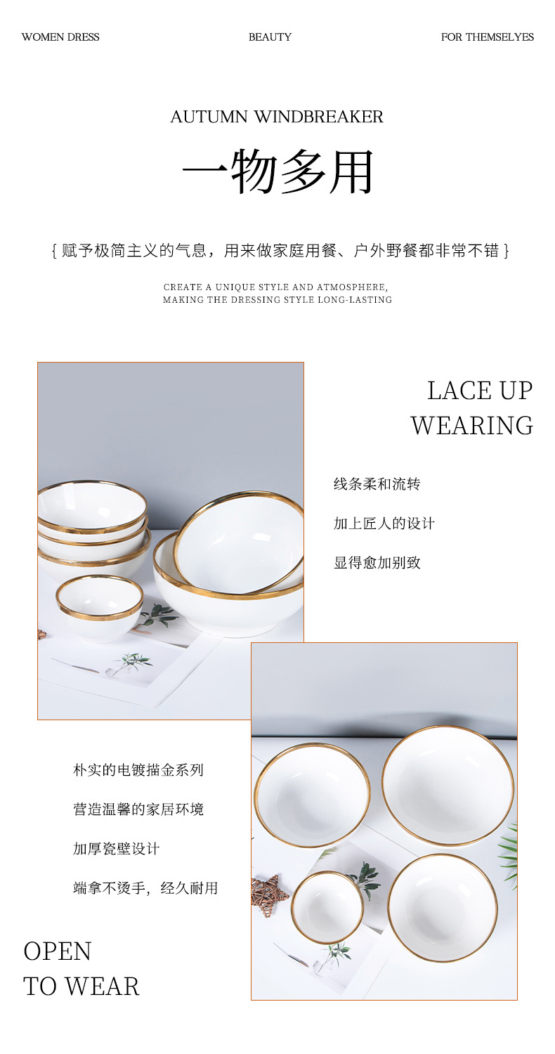 Новая серия керамических суповых чаш с электропокрытием золота 2026 года, легкая роскошь в скандинавском стиле, креативная посуда, оптовая продажа салатниц