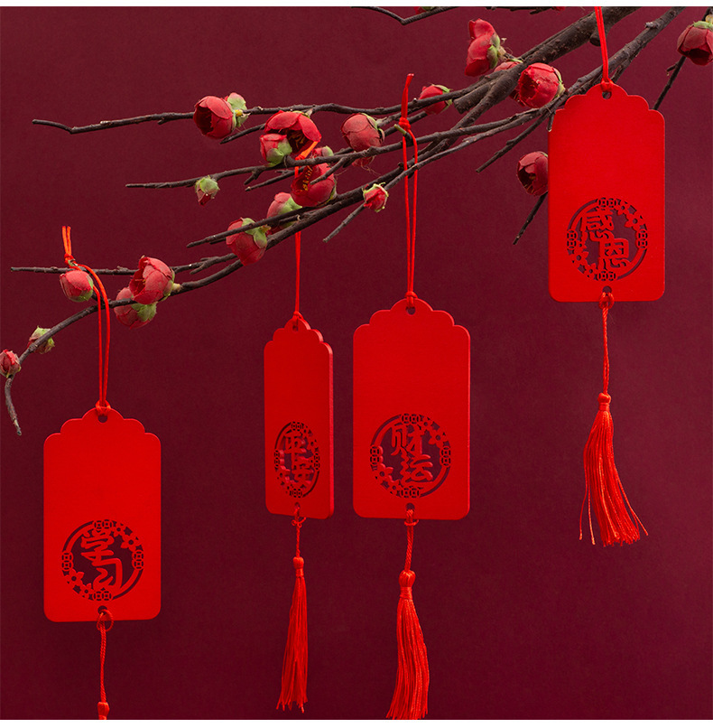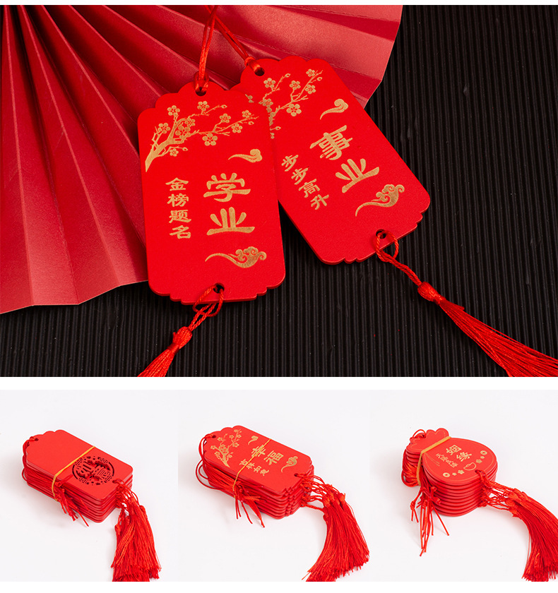 Деревянная открытка с пожеланиями, красная карточка благословения, карточка с пожеланиями, висячая декорация, сообщение для храма, рукописная карточка удачи