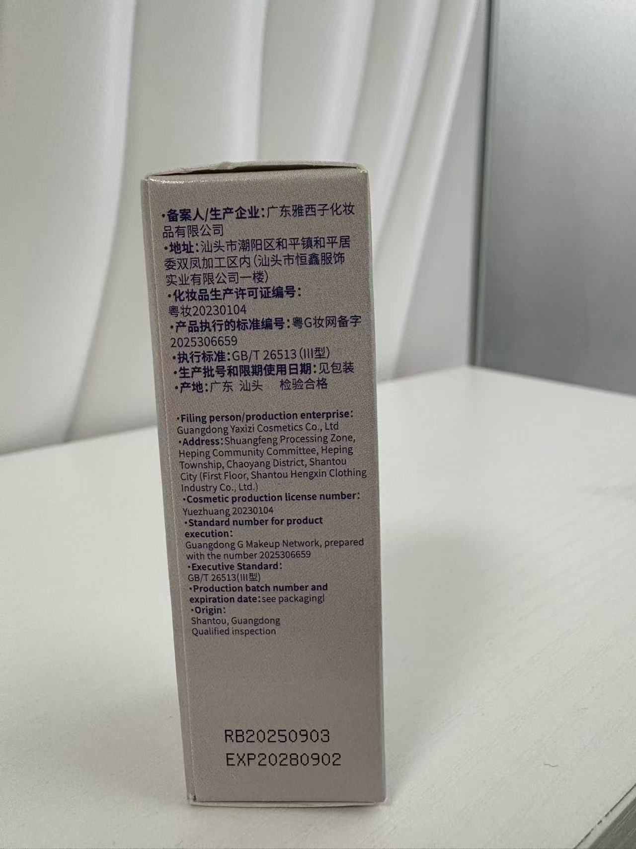 Номер сертификата регистрации несpecial косметики Guangdong g makeup network preparation number 2025306659