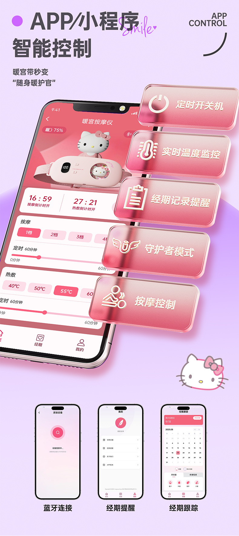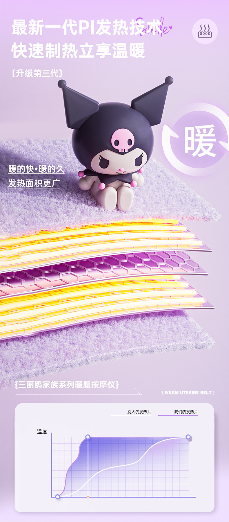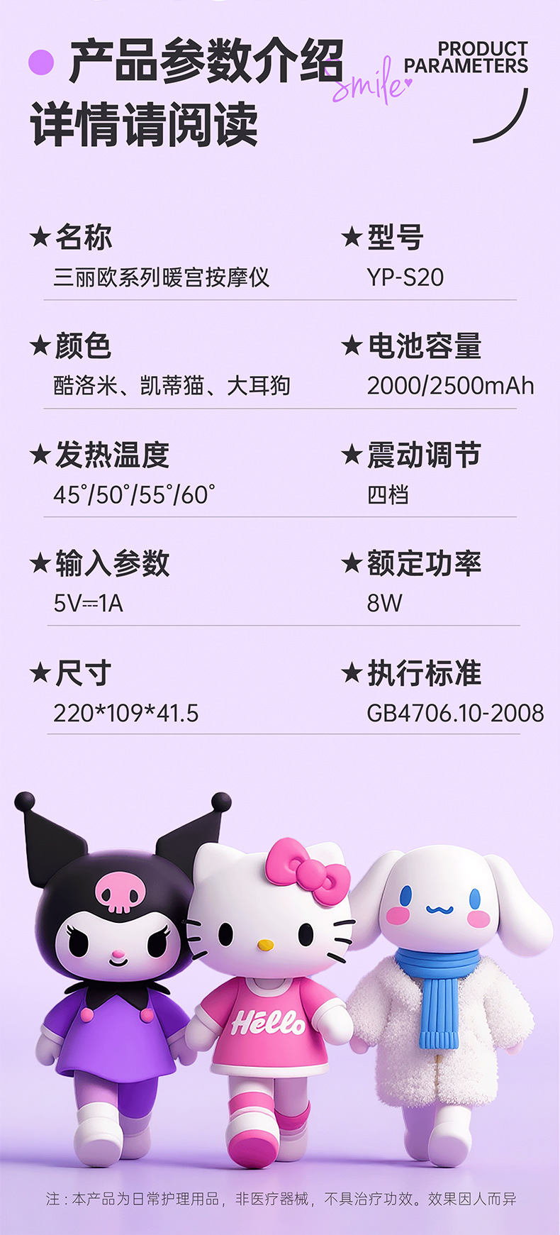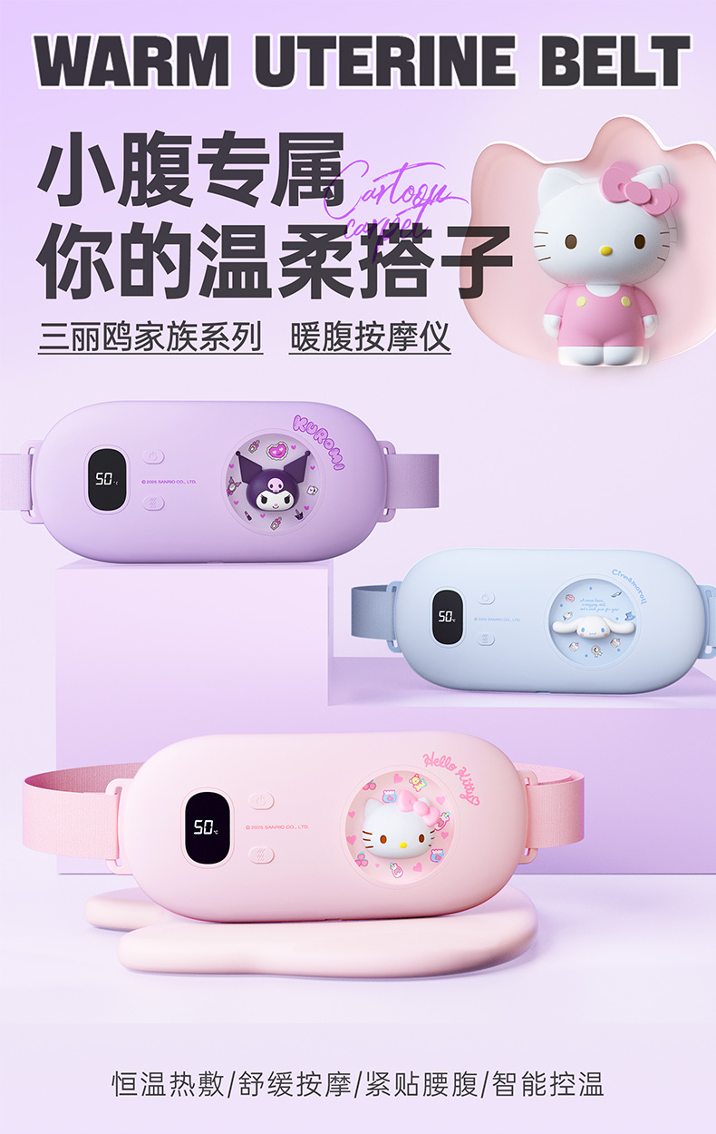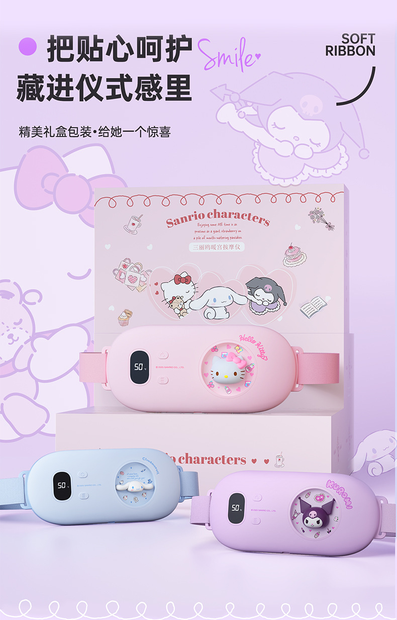 Санрио массаж для облегчения менструальных спазмов, вибромассаж с теплом для охлаждения матки, согревающий компресс для талии и живота, подарок для девушки