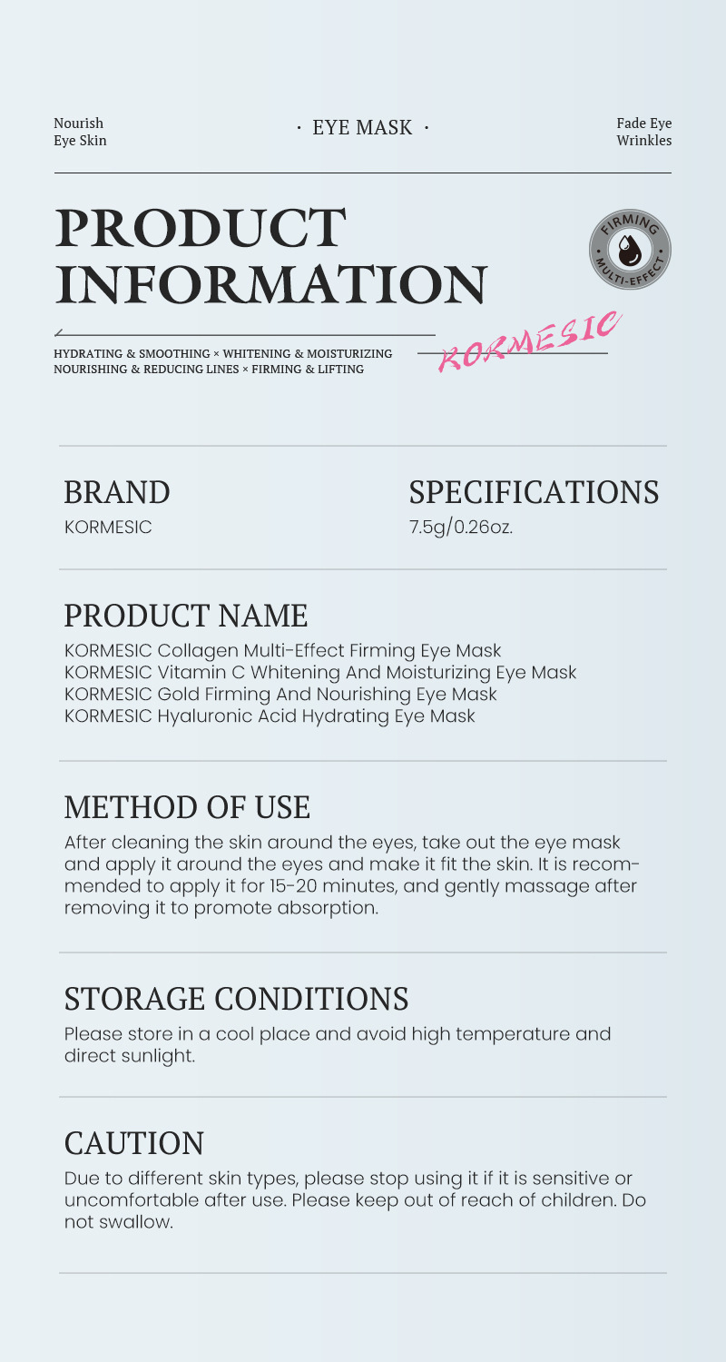 ![]() | Kormesic collagen multi-effect eye mask 7.5g [only for cross-border sales, domestic sales are prohibited, purchase means disclaimer and responsibility] | ¥0.2 / ≈ 2 ₽ | 464495 | 6092338470834 |