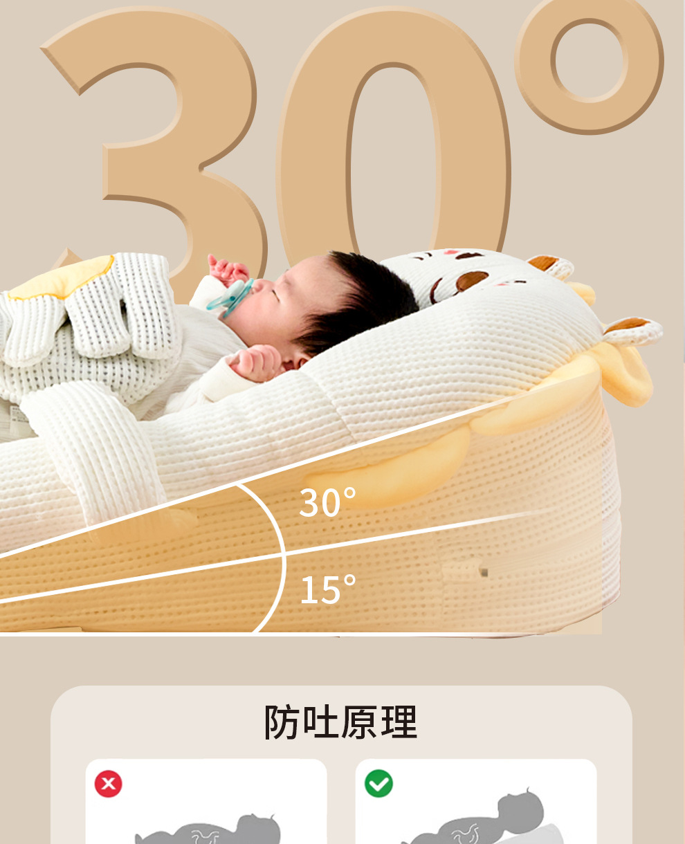 Детская кровать в кровати, наклонная кровать для новорожденных против рвоты, дышащая подушка против проливания и удушья, артефакт для кормления и лежания