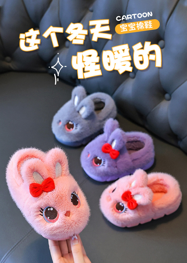 Зимние хлопковые туфли для детей, милые мультяшные принцессы, теплые пушистые туфли 2025 года, домашние хлопковые тапочки для младенцев