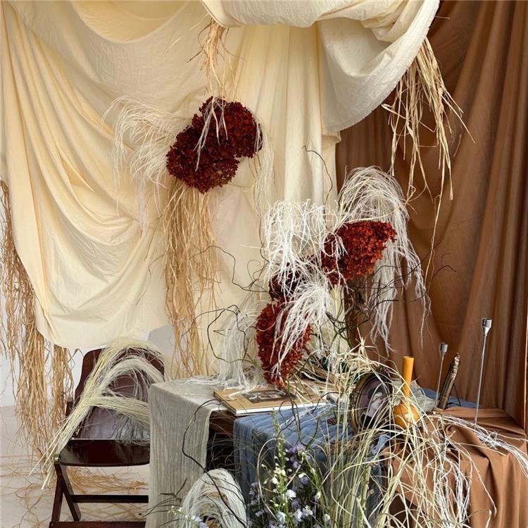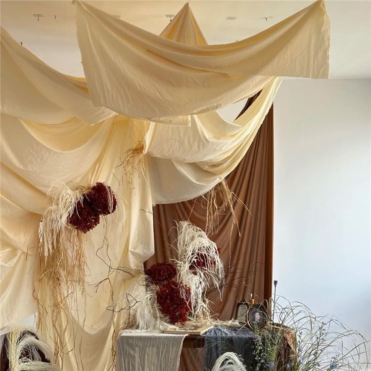 Нативный ретро текстура Сцена фон Крем свадебная занавеска Свадебное украшение Ткань потолка для десертного стола на один год