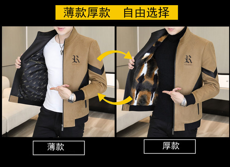 Новая куртка с стоячим воротником для мужчин, осень-зима 2025, флисовая, утолщенная, универсальная, с вышивкой, повседневная куртка