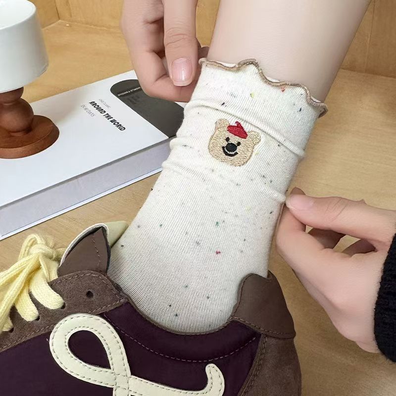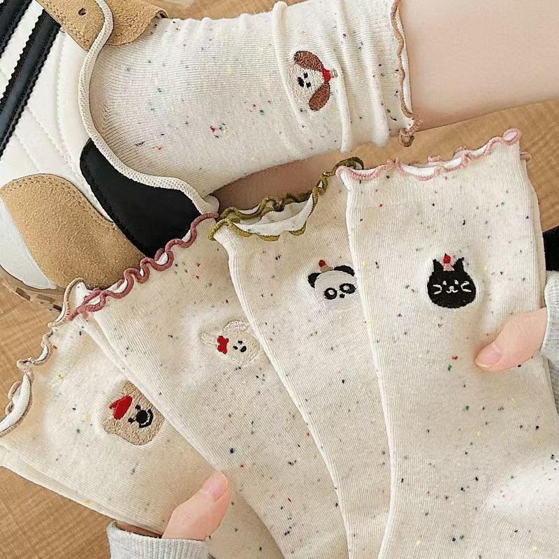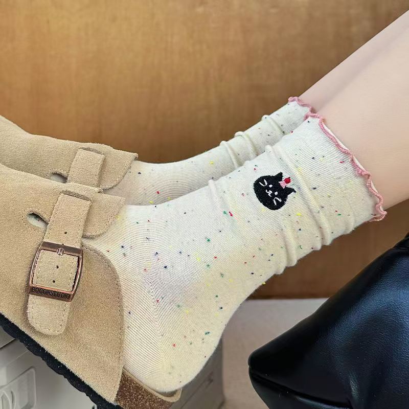 Мультяшные носки с рюшами для женщин, милые носки до середины икры осени с флокированным кружевом, носки для беременных
