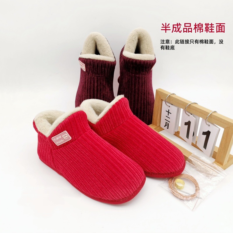 Новый 2025 года ручной работы полуподготовленный верх обуви из хлопка DIY комплект материалов для свадебных пар, зимние утолщенные флисовые верхние части обуви