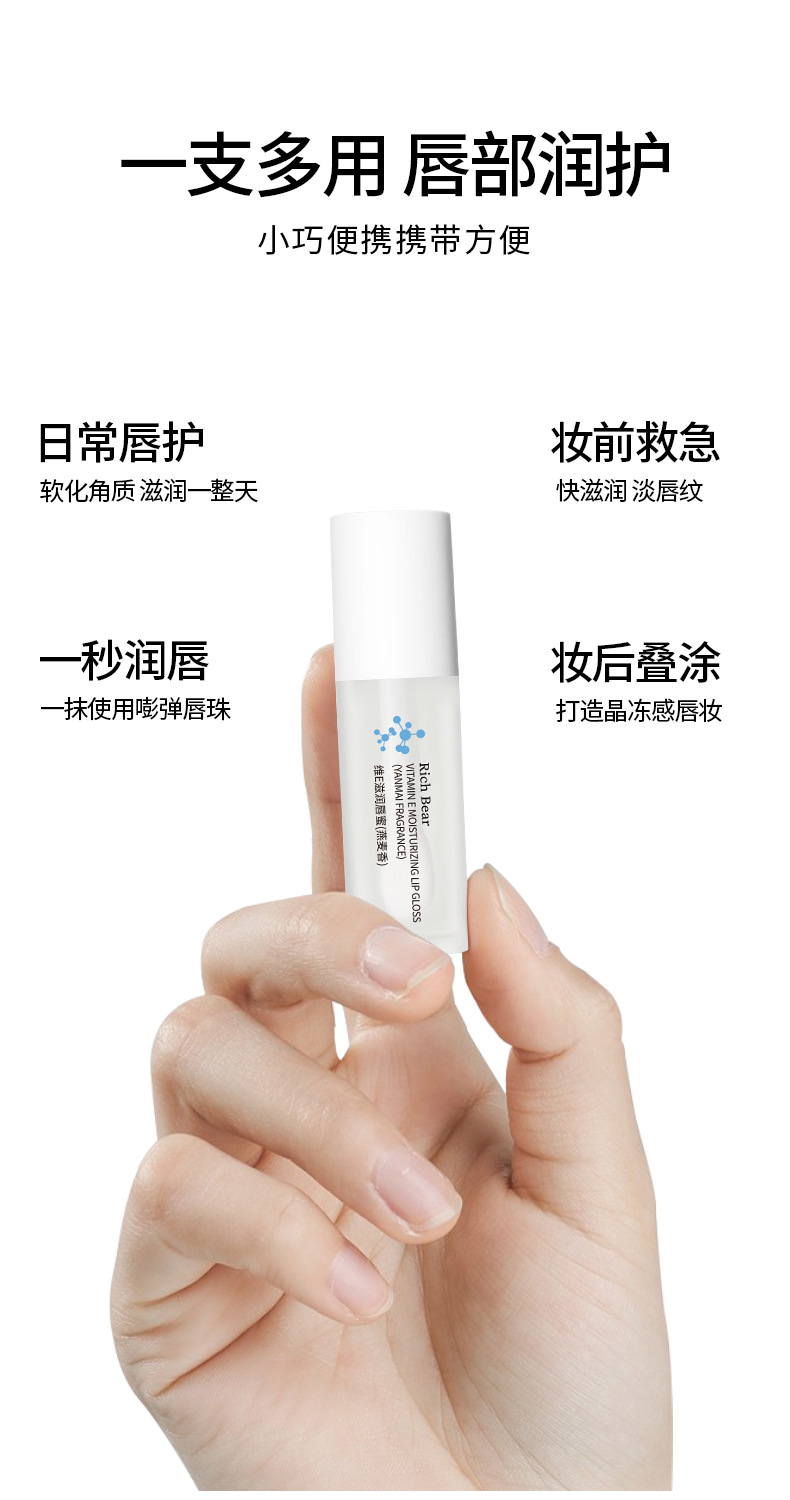 Rich Bear увлажняющий и ухаживающий блеск для губ, эссенция питает губы, деликатно увлажняет и восстанавливает линии губ на 12 часов