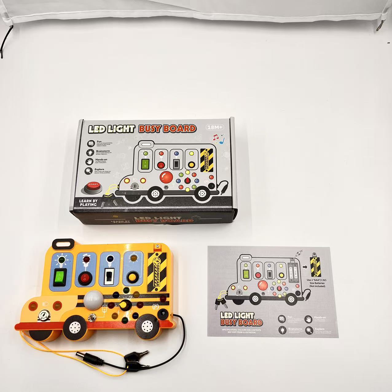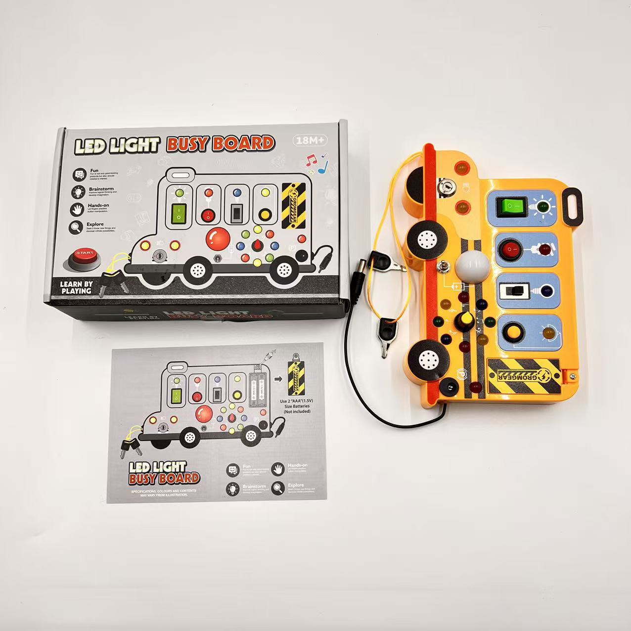 Кросс-бордерная детская игрушка с автобусом, светом и звуковыми эффектами, обучающая доска для раннего развития, оптовая продажа
