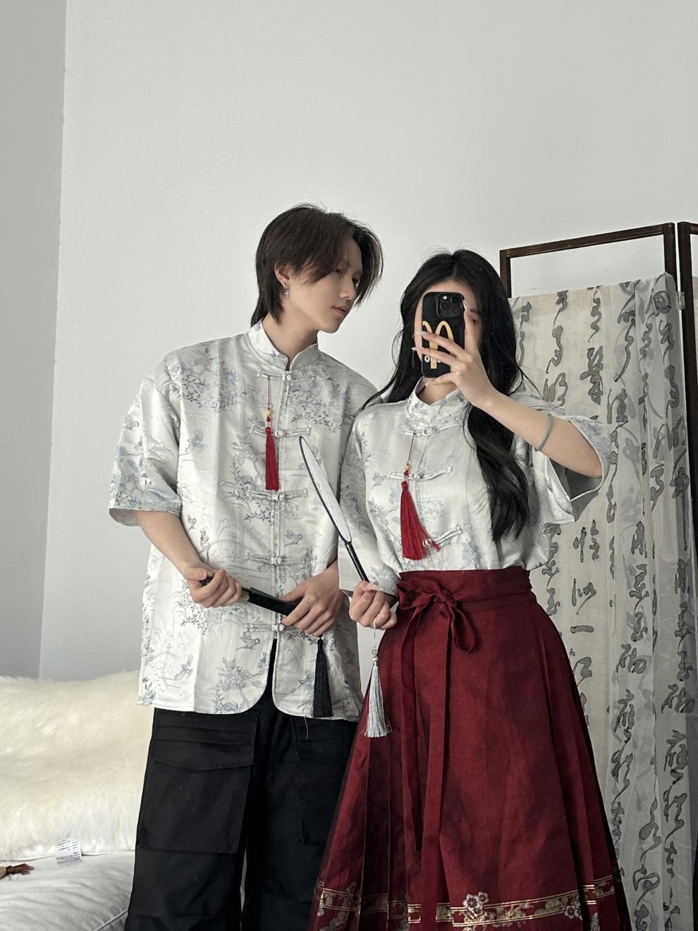 764 реальная съемка комплект жаккард короткий рукав для мужчин и женщин классическая форма школьная форма выпускного фото восточная эстетика