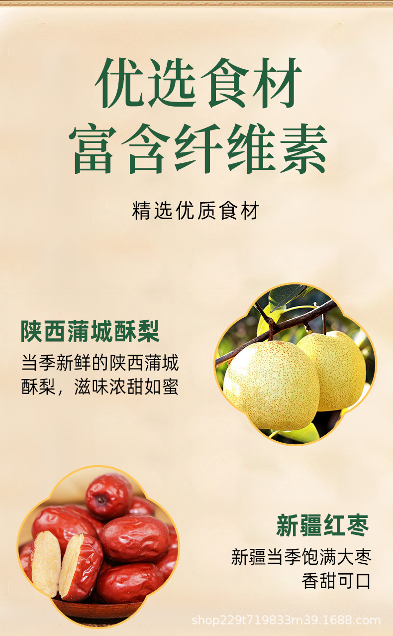 ![]() | Original tremella roasted pear 252g | Original small bowl of pear 252g*1 bowl | 1шт: ¥7.92, 50шт: ¥6.12, 100шт: ¥5.76 | 450 | 6090836155996 |