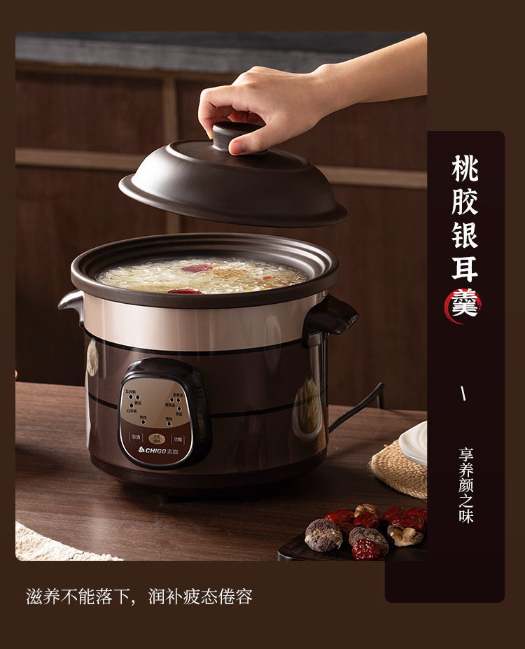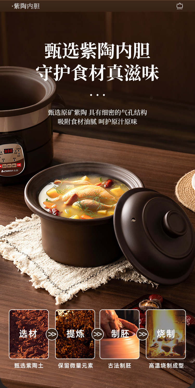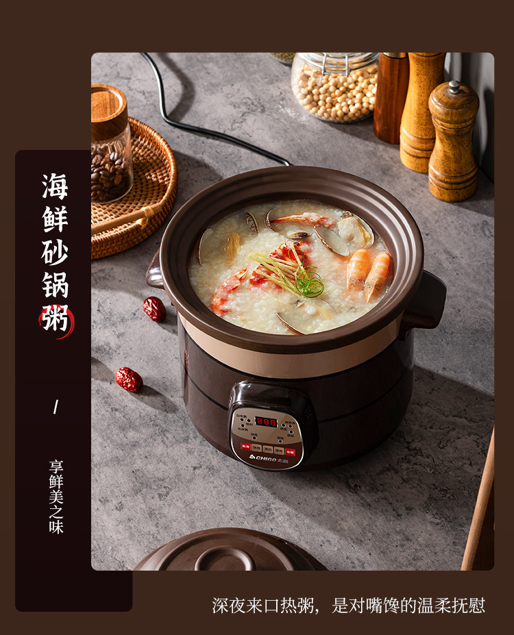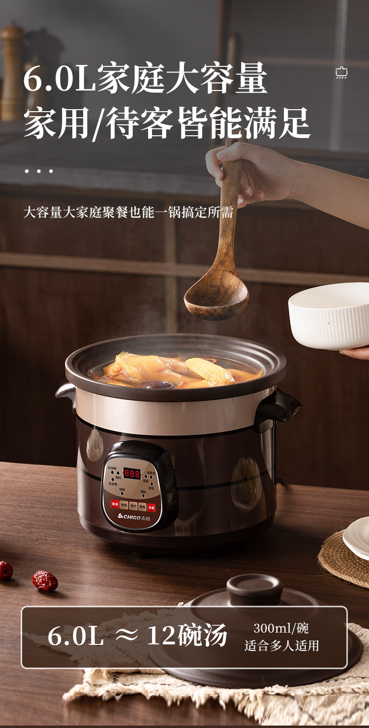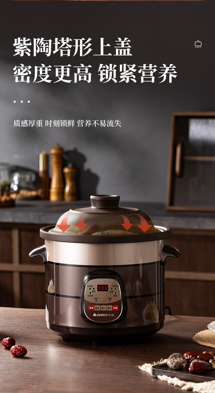 Электрическая кастрюля Chigo с полной автоматикой, кастрюля для супа для сохранения здоровья, керамическая кастрюля из пурпурного песка для каши, детская электрическая кастрюля для тушения