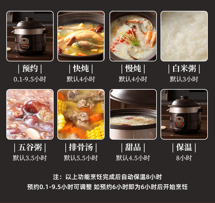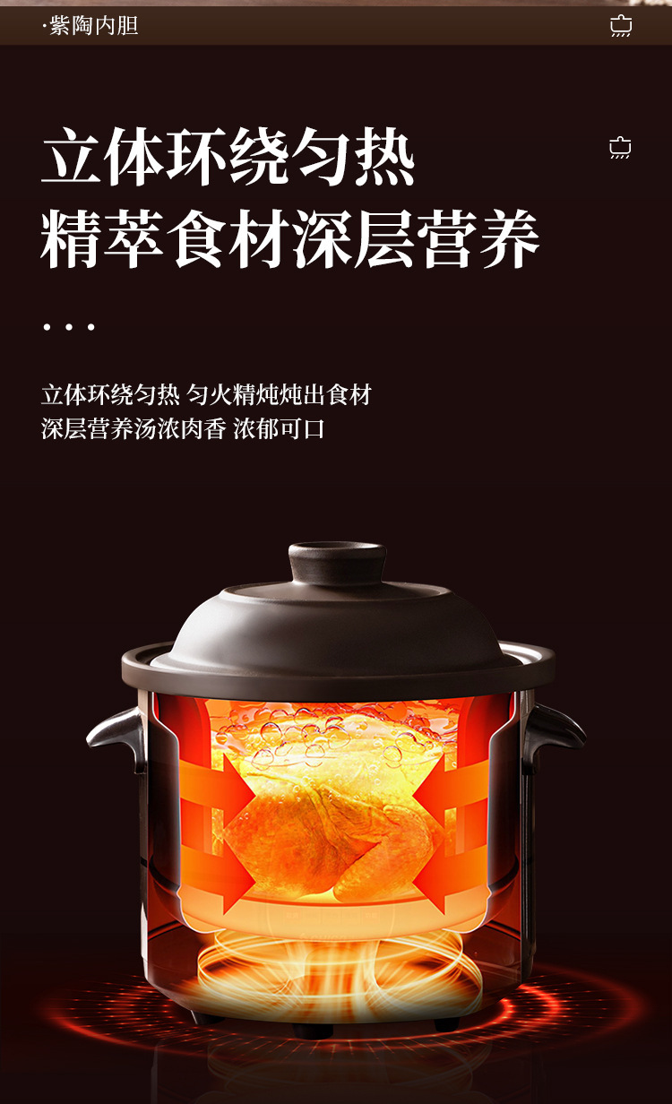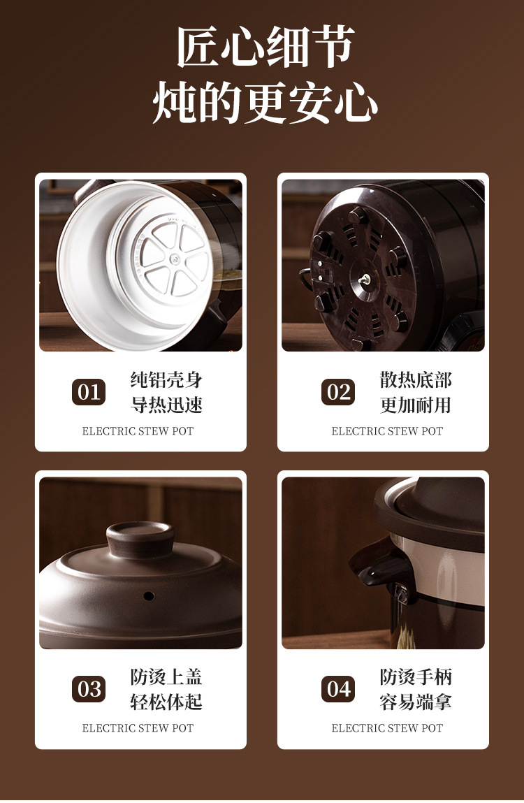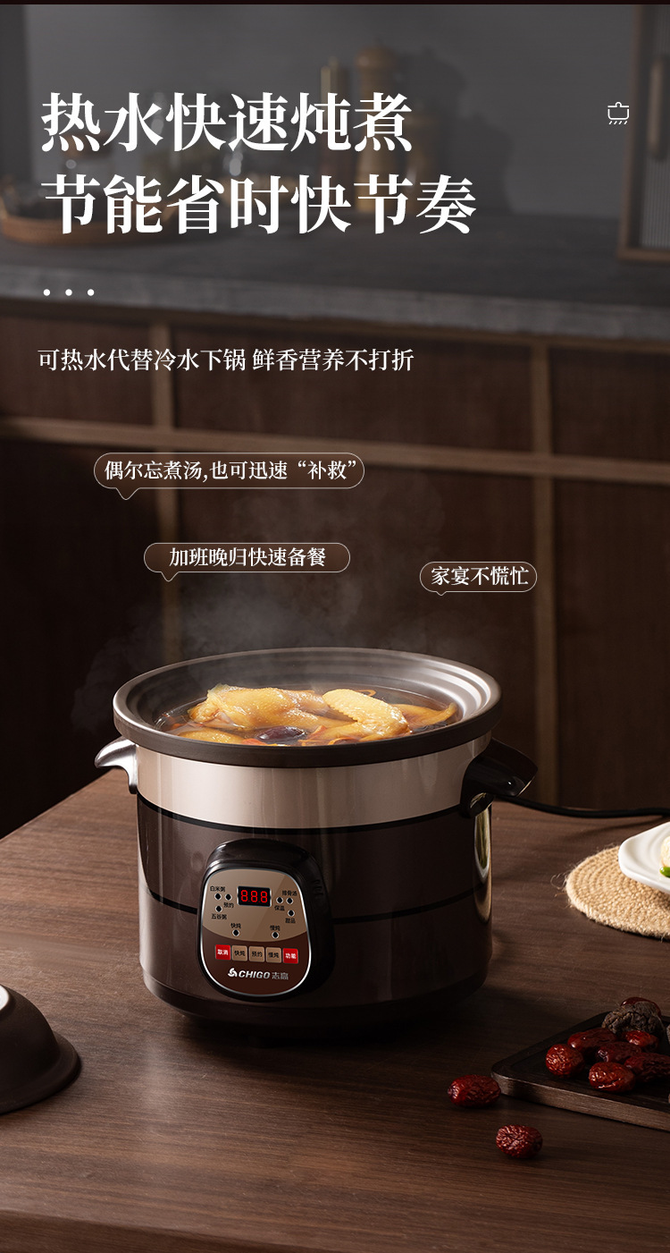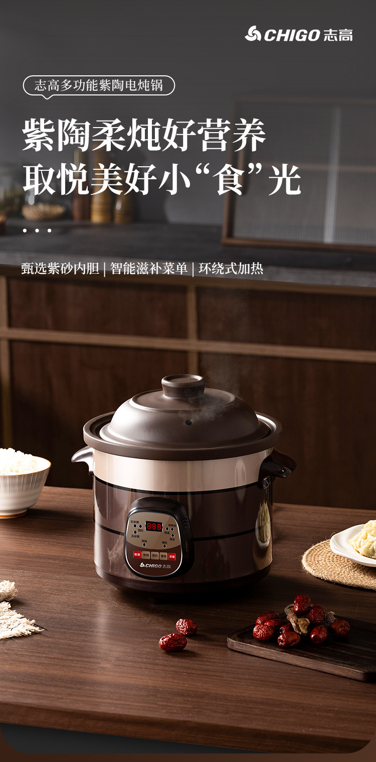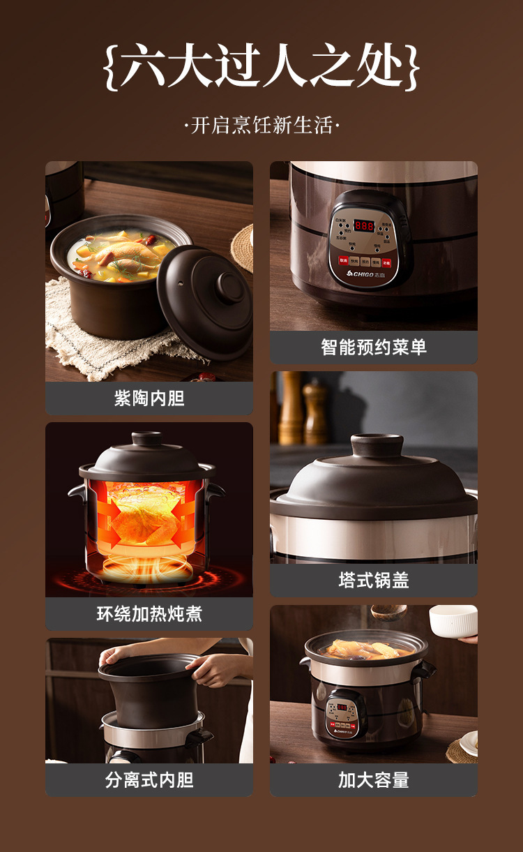 Электрическая кастрюля Chigo с полной автоматикой, кастрюля для супа для сохранения здоровья, керамическая кастрюля из пурпурного песка для каши, детская электрическая кастрюля для тушения