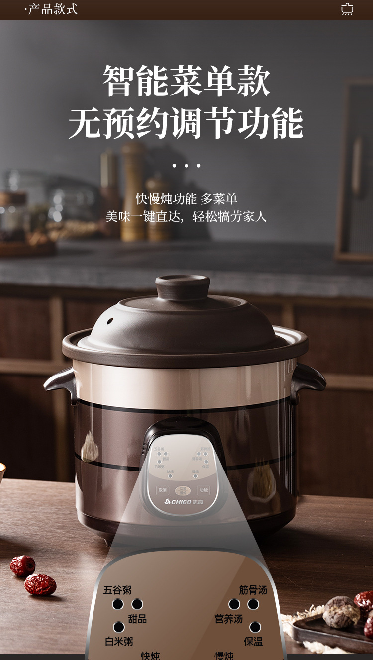 ![]() | Chigo [3.5l smart model] is suitable for 3-4 people | ¥51.0 / ≈ 615 ₽ | 14840 | 6090869338471 | |